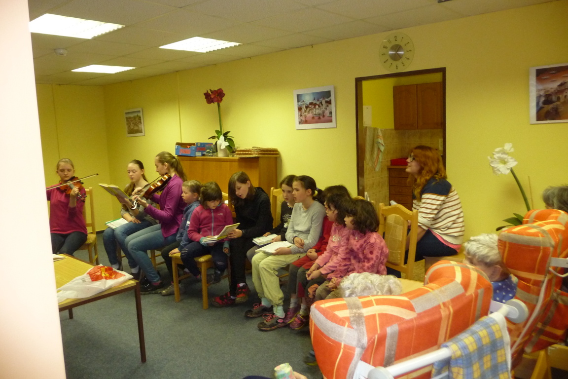 16. dubna odpoledne u nás vystoupily Světlušky - oddíl malých skautek s vedoucími. Hodinka - nejen trampských písniček - utekla jako voda. Mnozí si i rádi zazpívali s malými zpěvačkami.