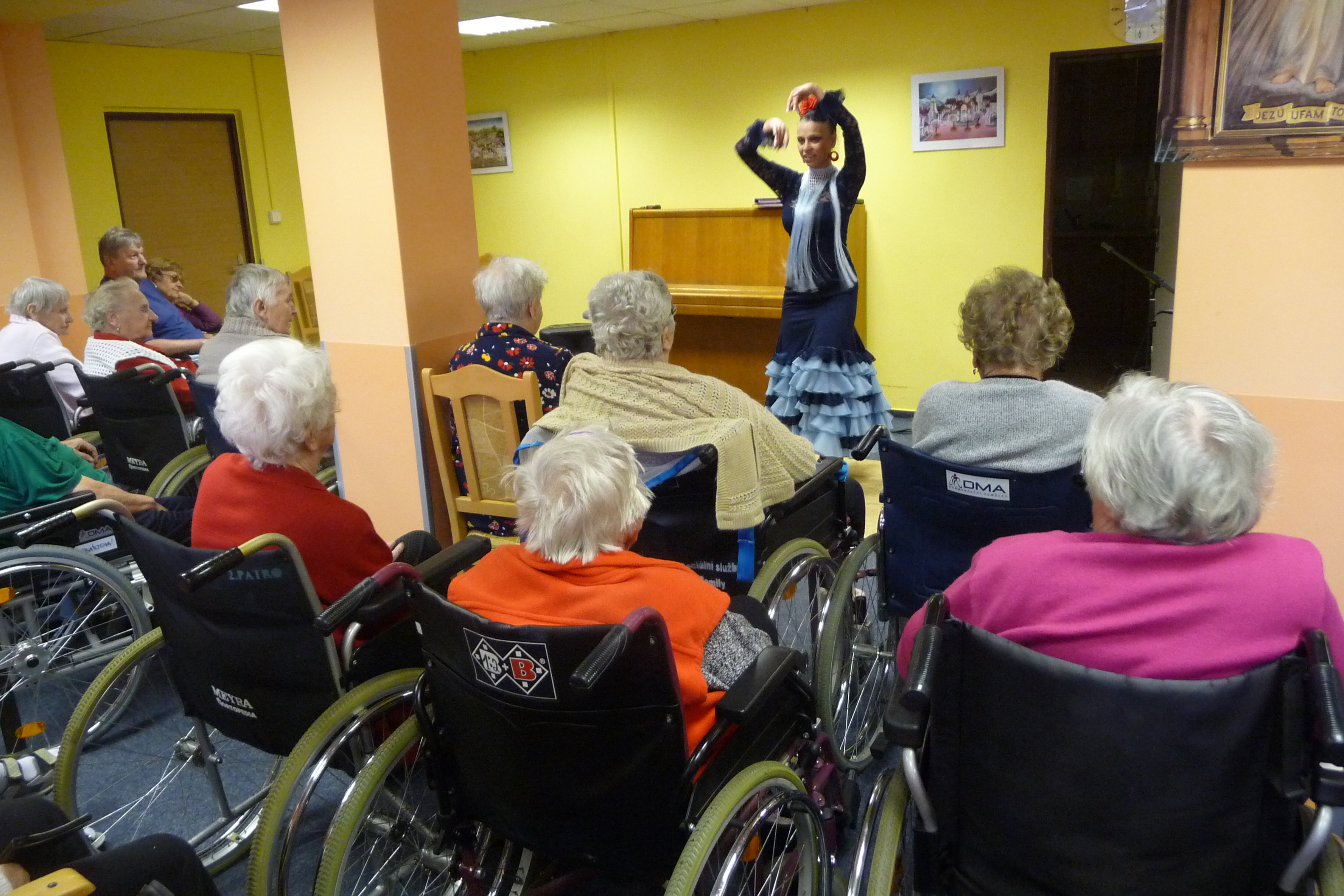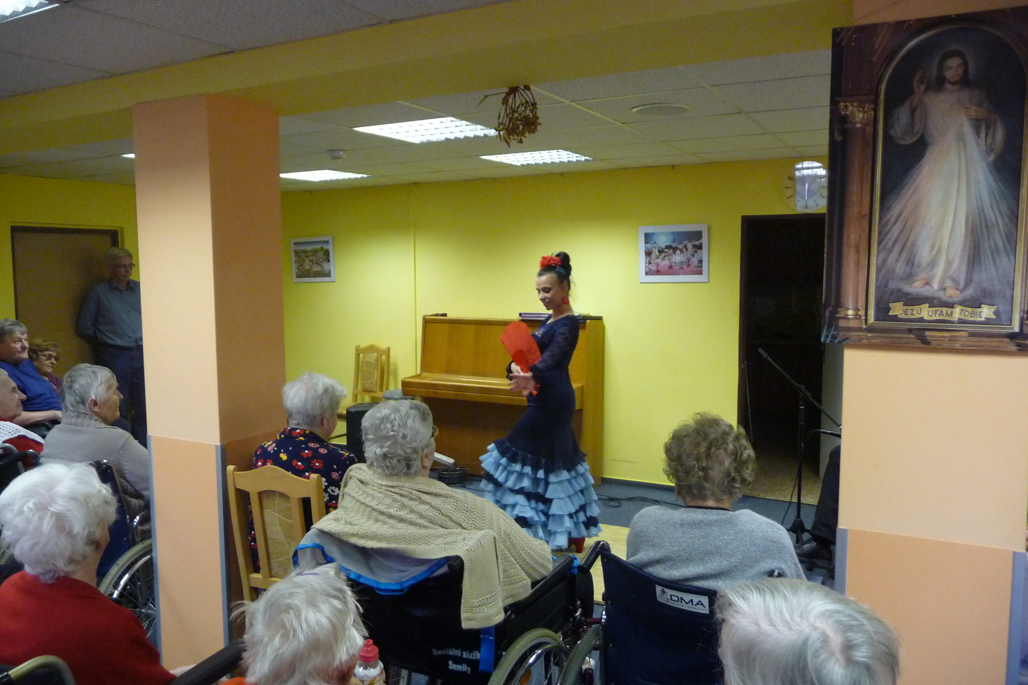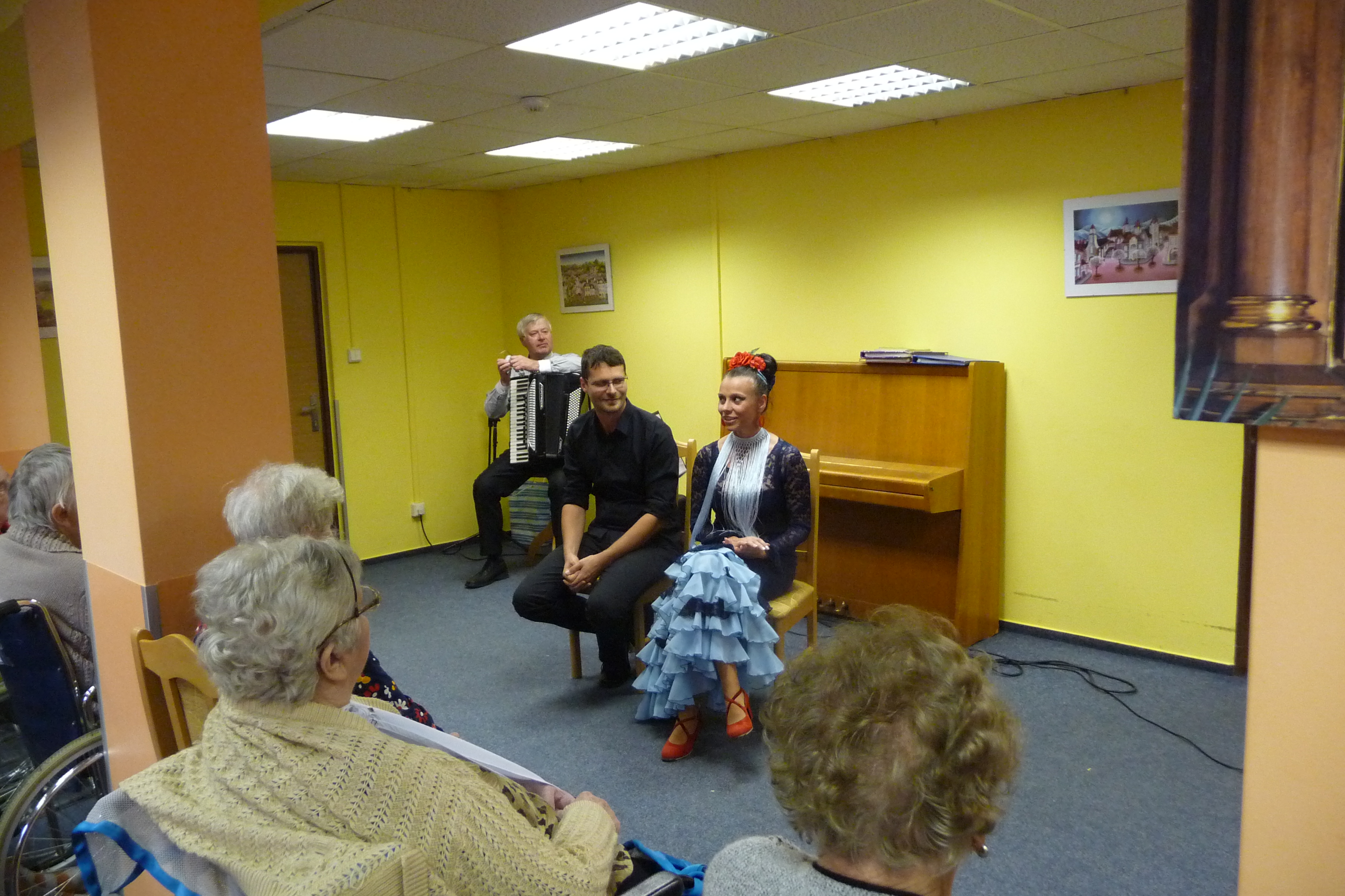 V neděli 25. září jsme u nás přivítali tanečnici flamenca Andreu Machovou, která předvedla ukázku tohoto španělského tance. Na kytaru ji doprovázel Jan Pospíšil. A abychom opravdu slavili, k poslechu přišel také zahrát na akordeon pan Petr Ochman.