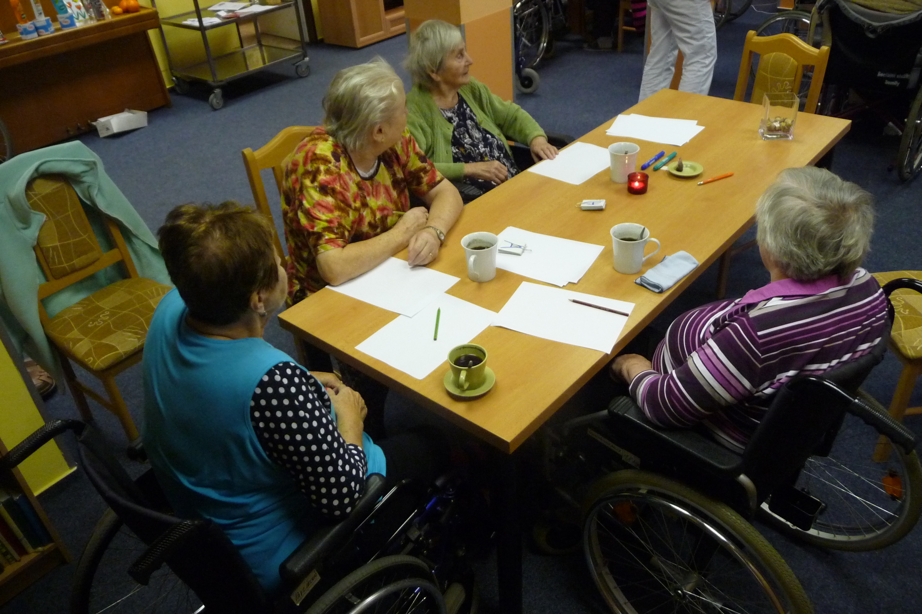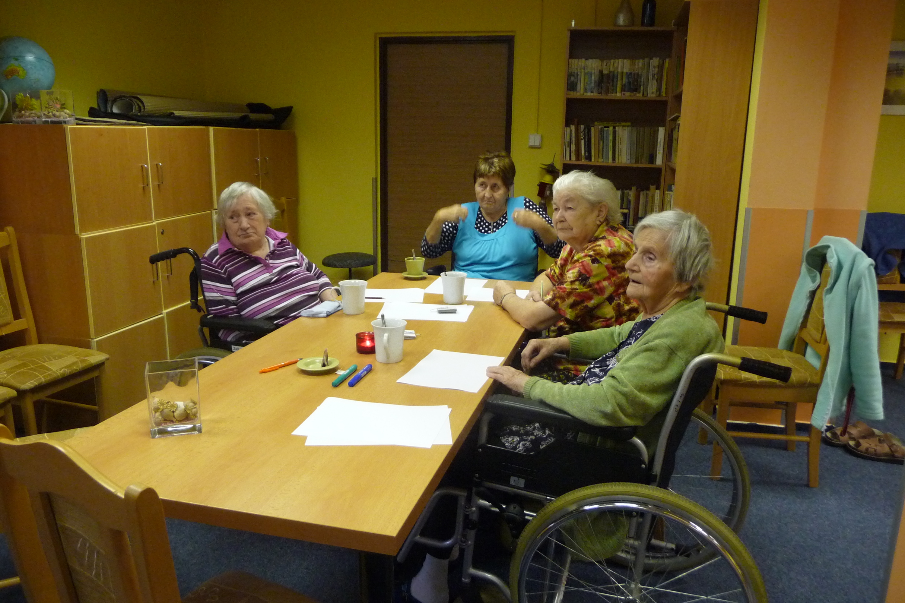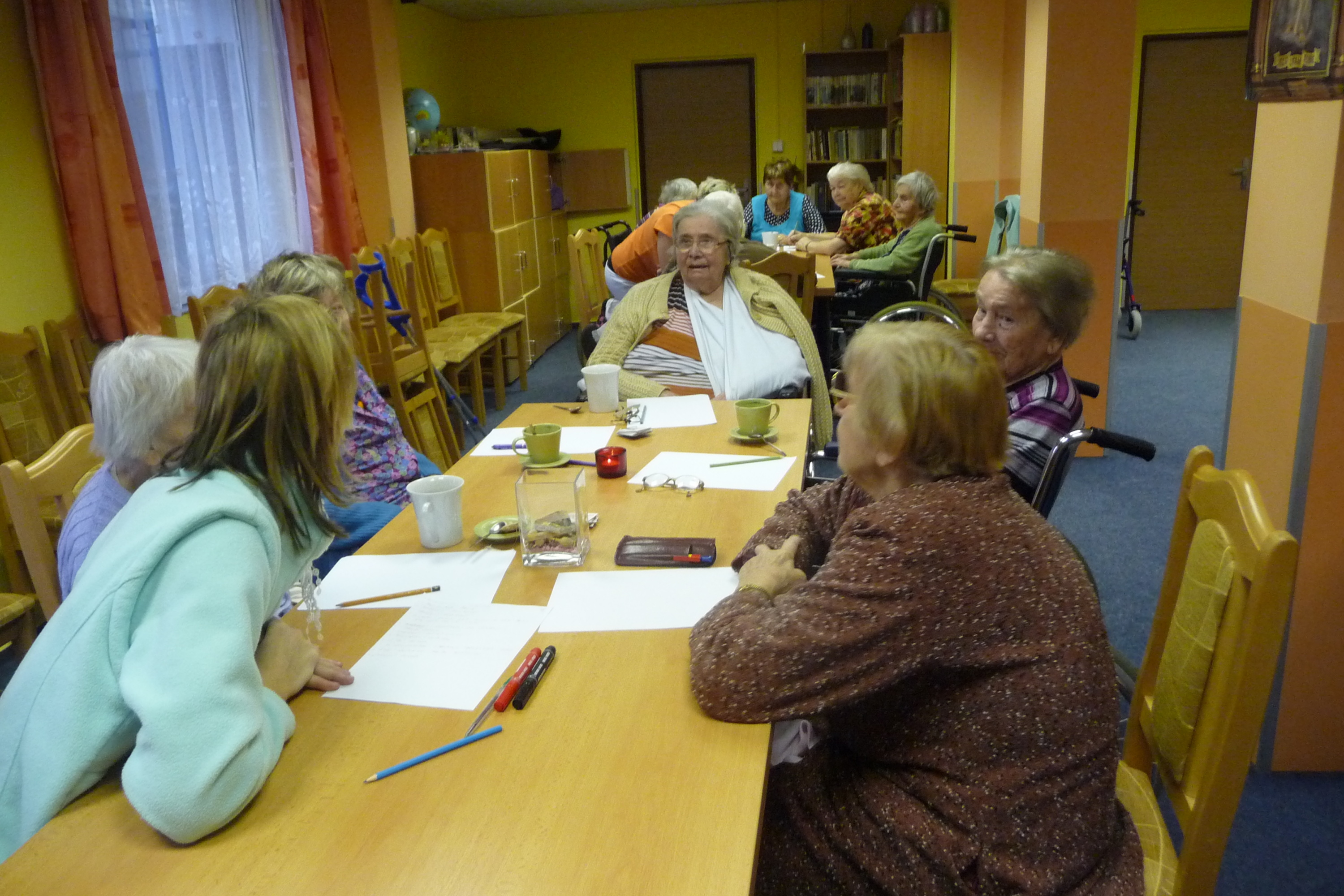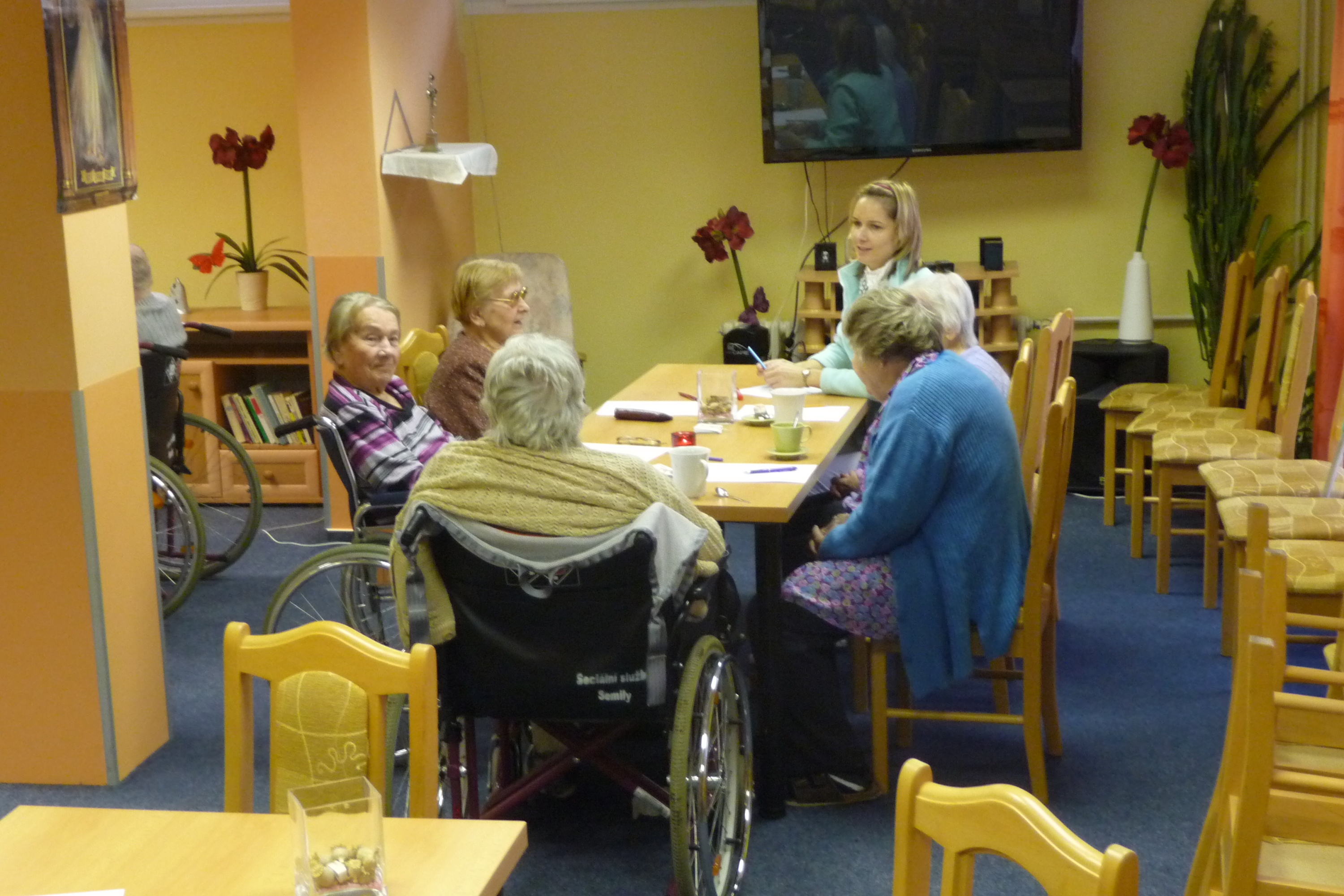 Poslední trénování paměti proběhlo opět v kulturní místnosti. Všichni účastníci, kteří se rozdělili do tří skupinek, plnili různé úkoly, tvořili slova ze zadaných písmen, vzpomínali na vánoční zvyklosti a snažili se vypsat všechny zimní sporty. Příjemnou tečkou byla opět hra bingo.