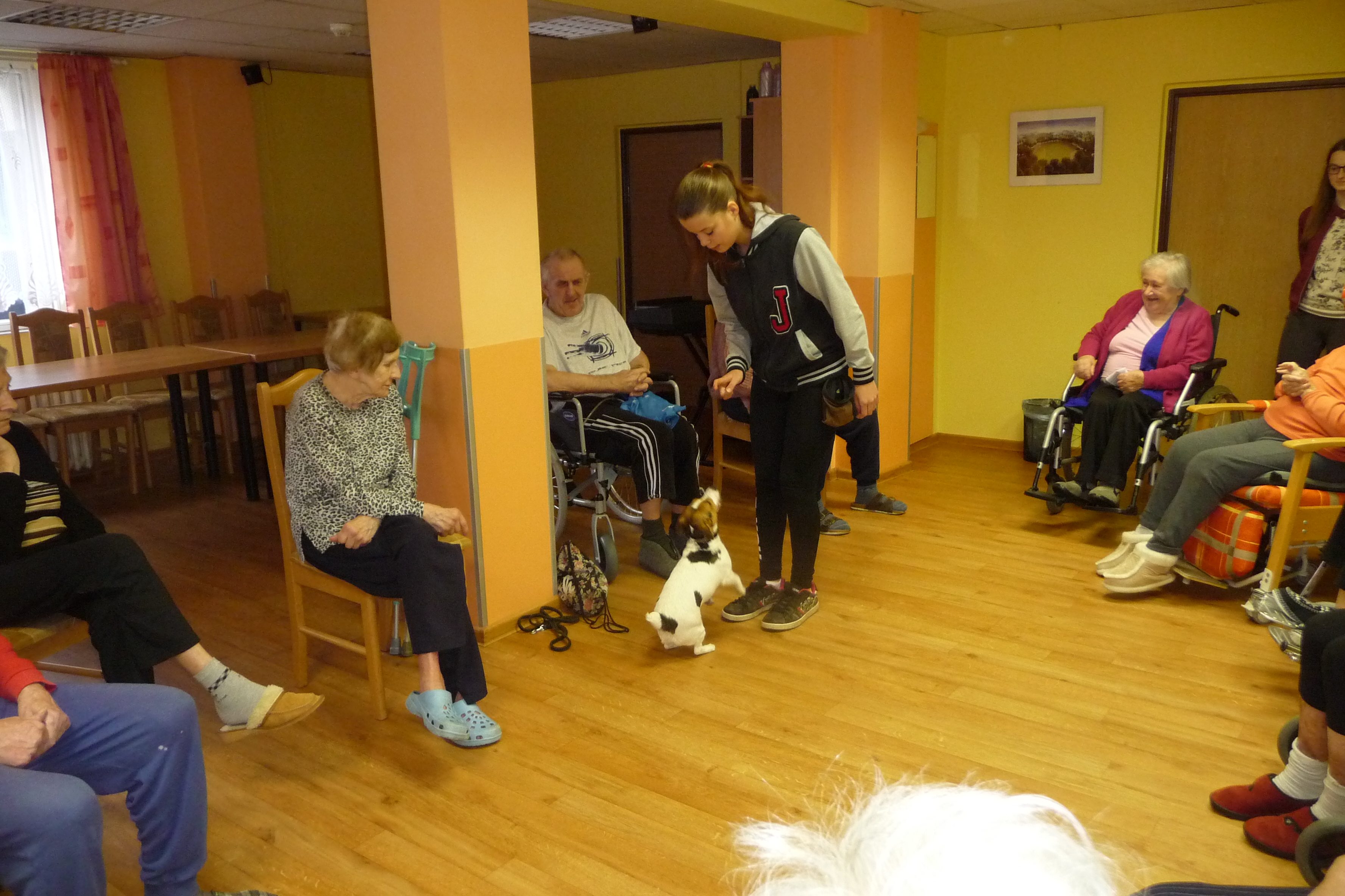 V úterý 4. dubna odpoledne k nám přišla slečna Anička Könnyüová ze Semil s pejskem, kteří nám spolu předvedli tanec i různé triky. Zbyl čas i na pomazlení s "Jackie"