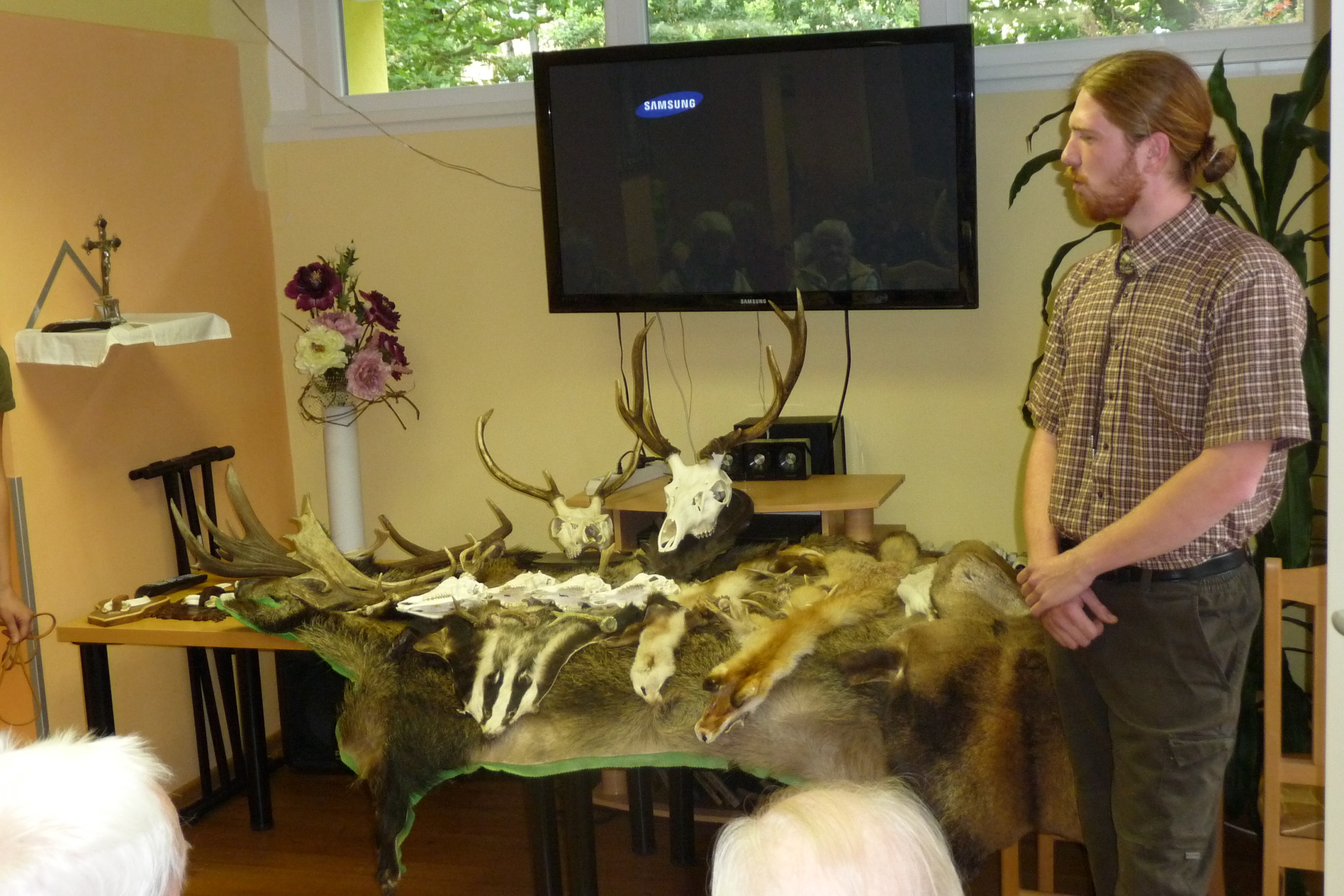 Ve středu 26. červenece k nám přišli dva myslivci Alžběta Hejduková a pan Hons a přinesli sebou mnoho trofejí - kožešin, rohů i parohů. Pověděli nám mnoho zajímavého o jelenech, srnách i kancích. Viděli jsme i šikovného psa Bárta. Děkujeme