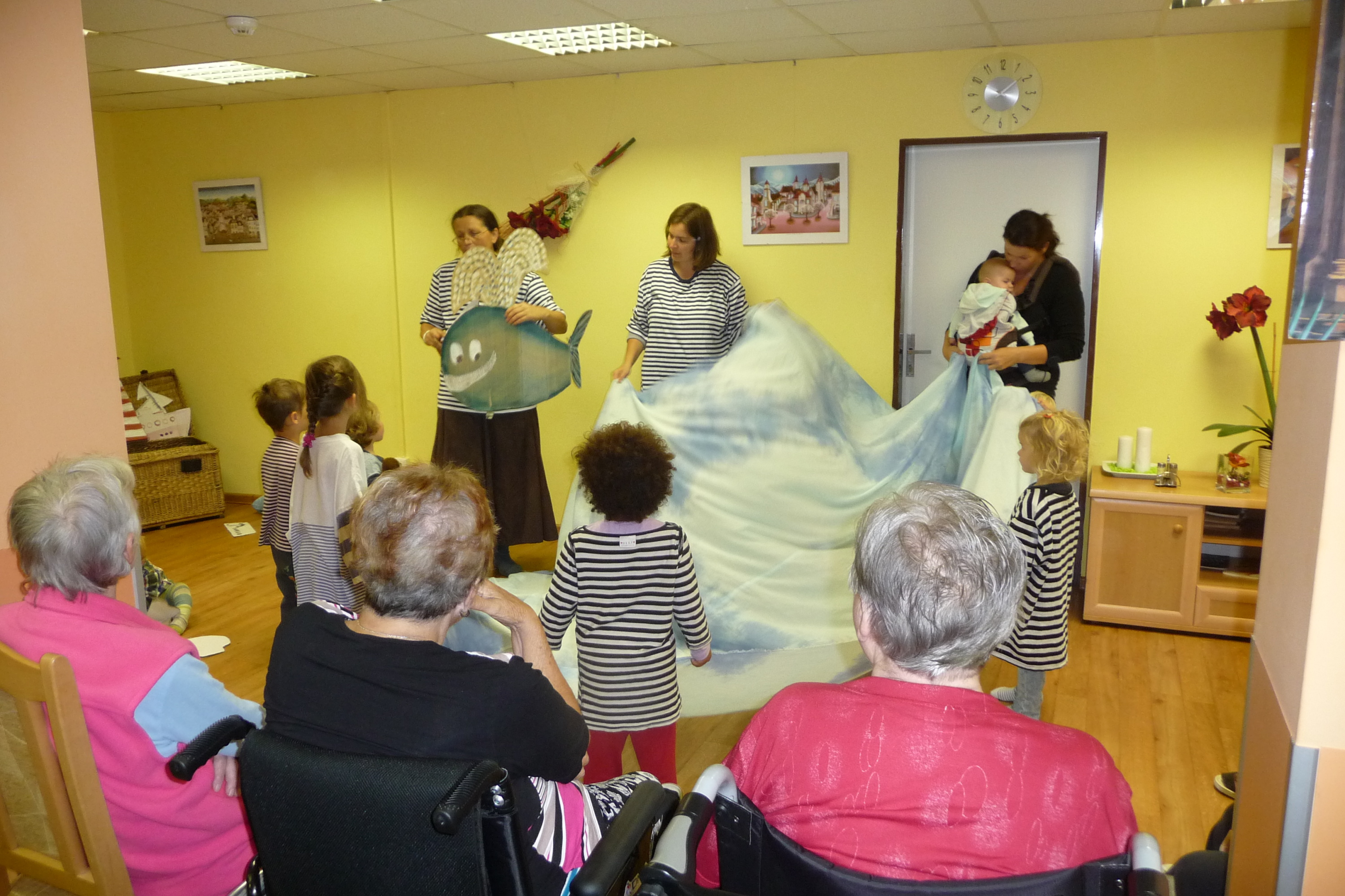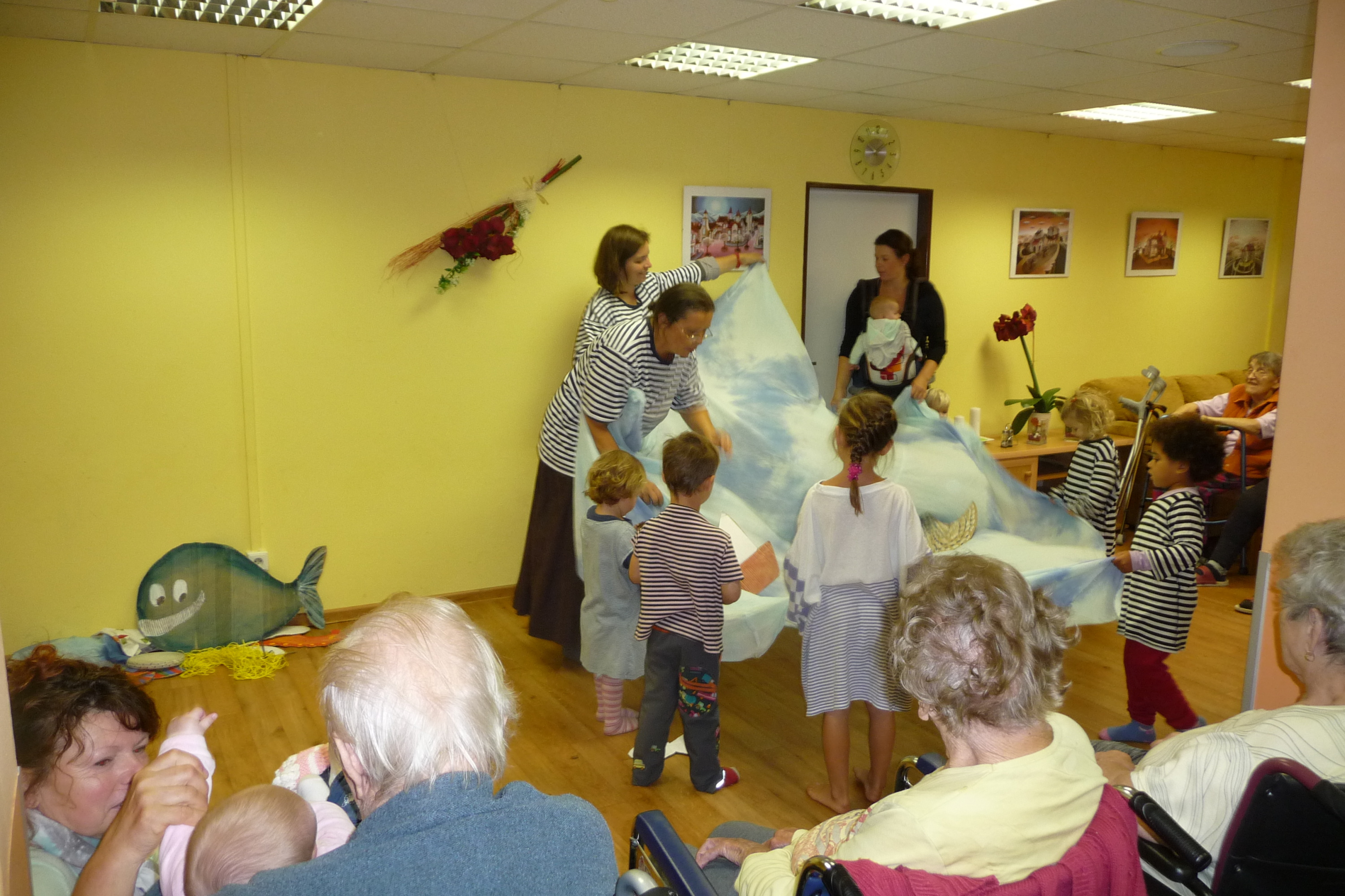 V pondělí k nám přišly děti s maminkami a zahrály nám, zazpívaly a předvedly hru o vodě, lodičkách a moři. Vše pod vedením paní Lenky Hřibové. Děkujeme