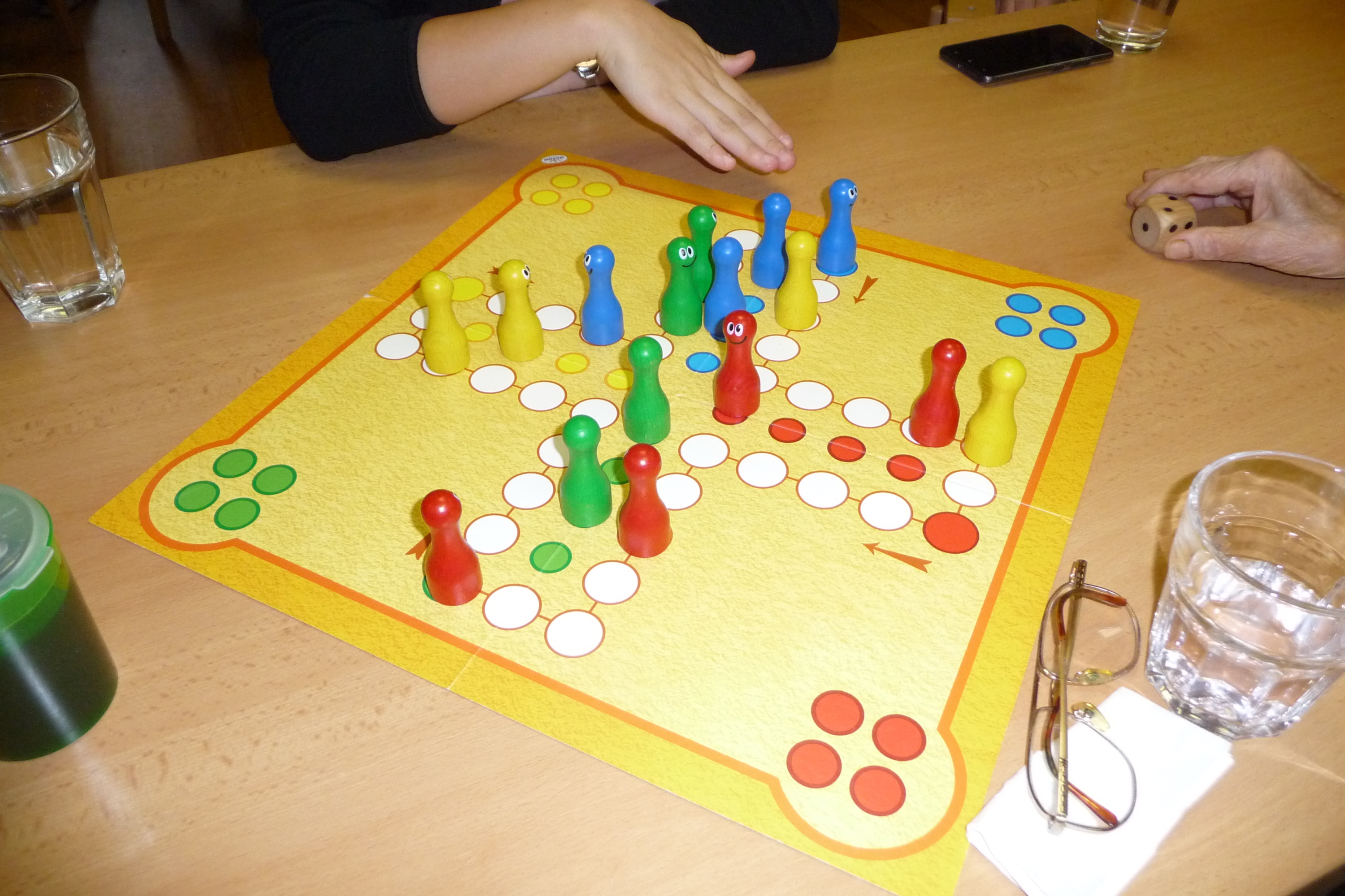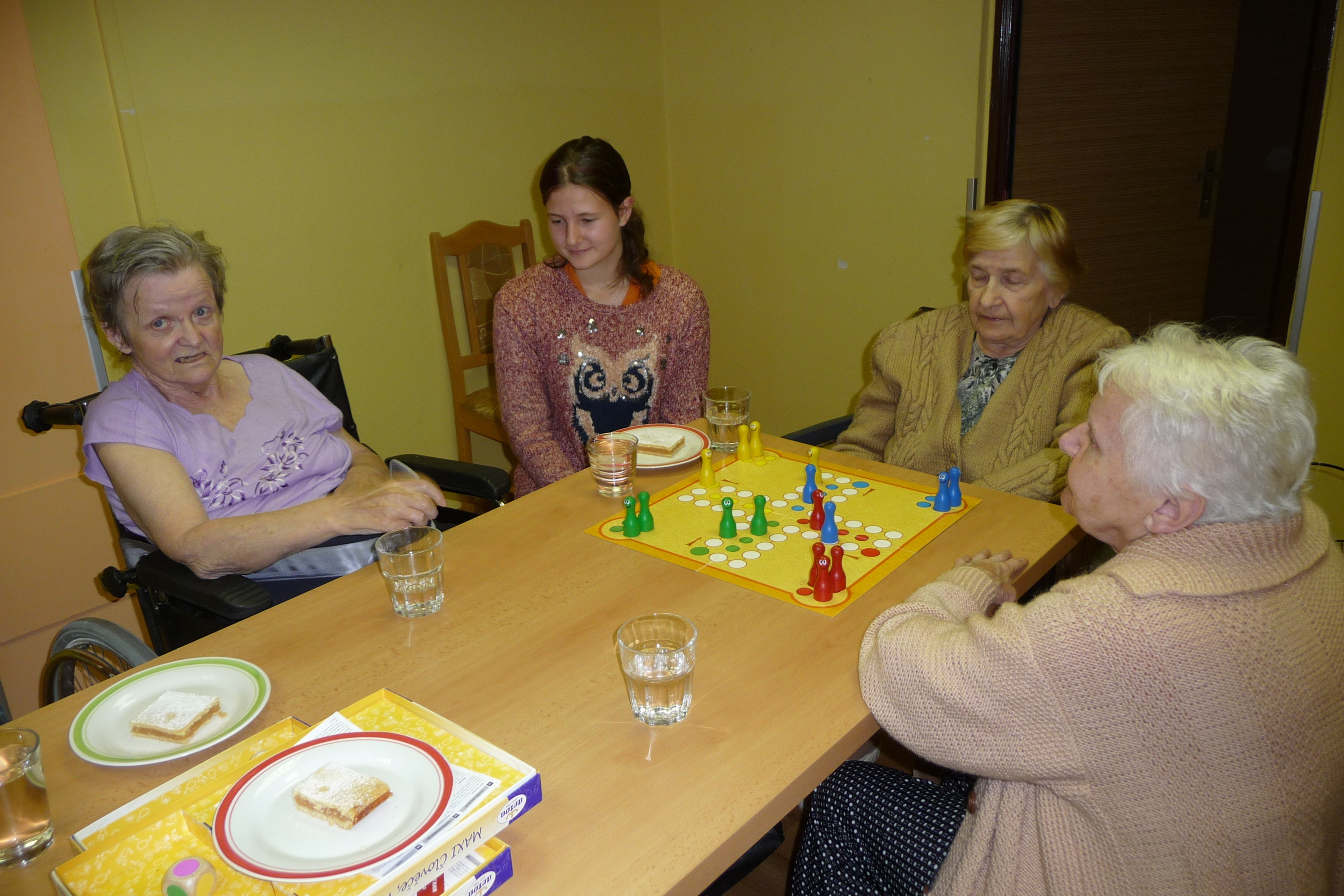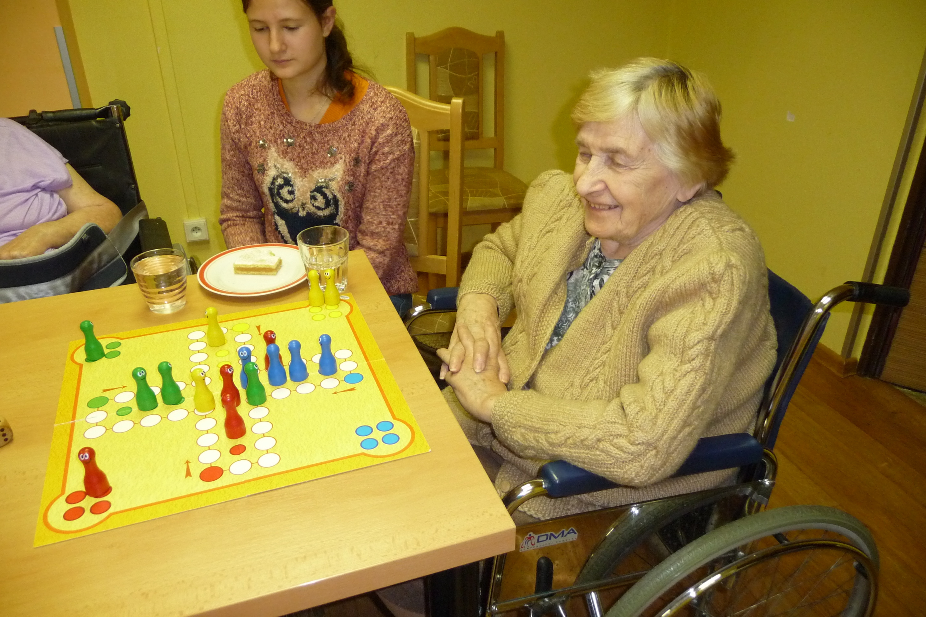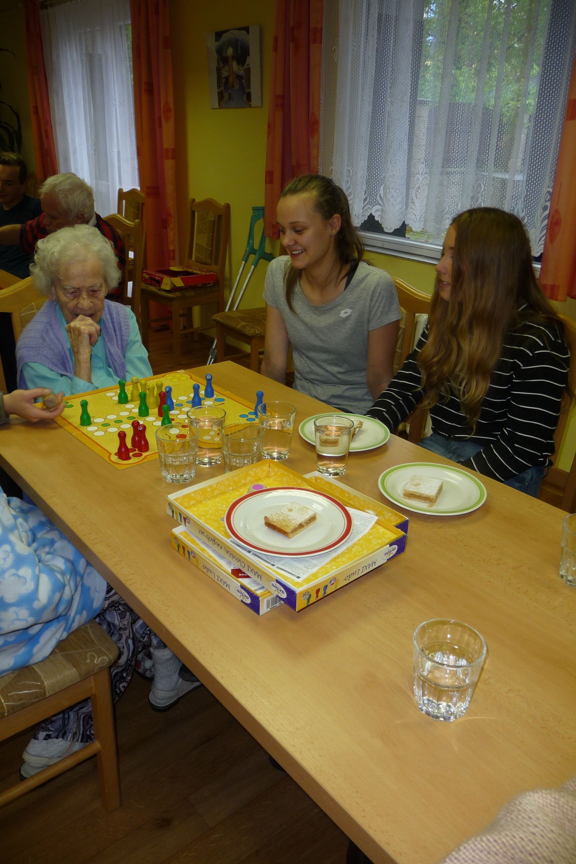 Žáci pomáhali některým našim uživatelům házet kostkou nebo posouvat figurky po ploše, a hra svižně utíkala. Bylo vidět, že trénují nejen děti, ale i naši "závodníci". Vyhrávali nejen mladší, ale i ti starší...a radost měli všichni.