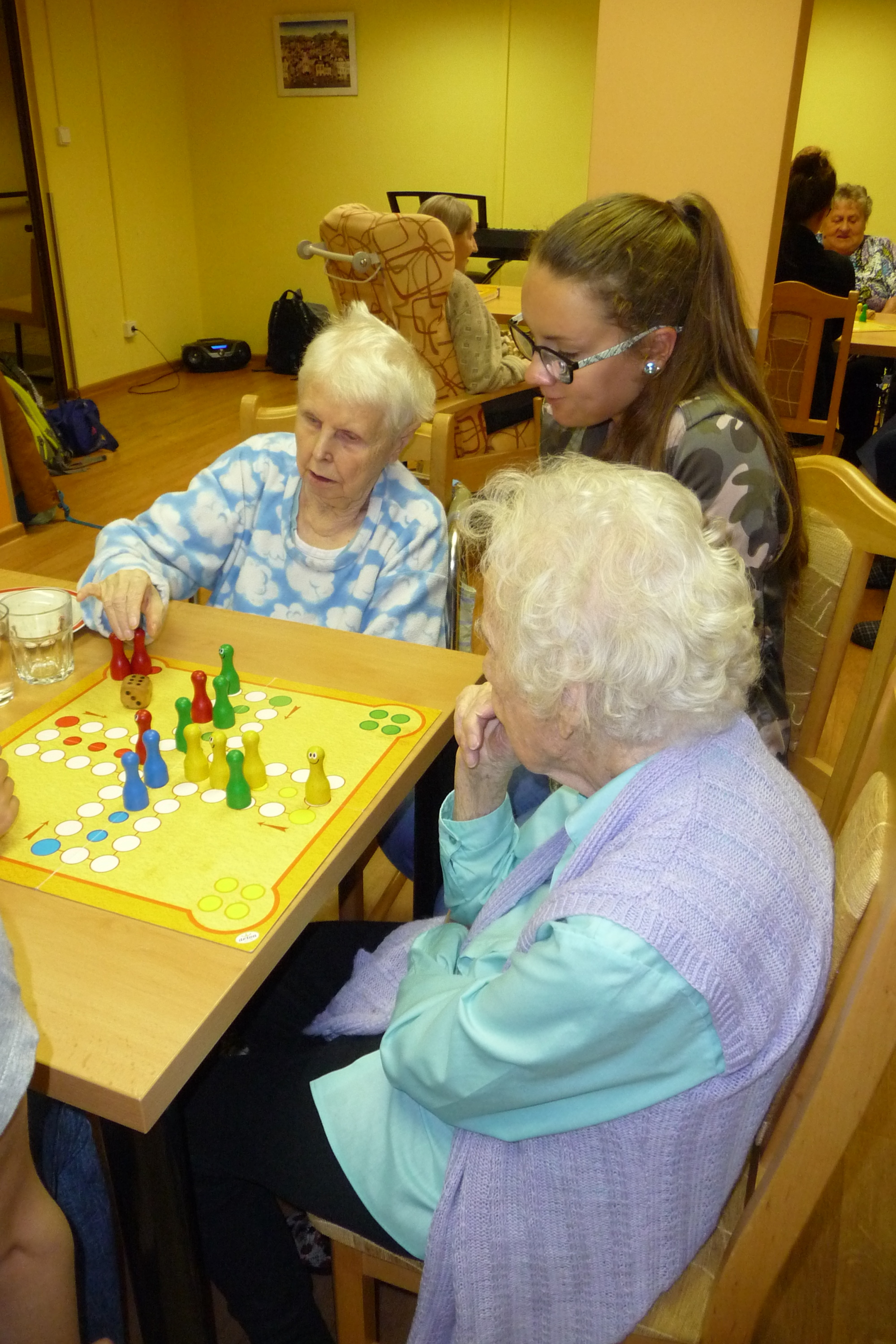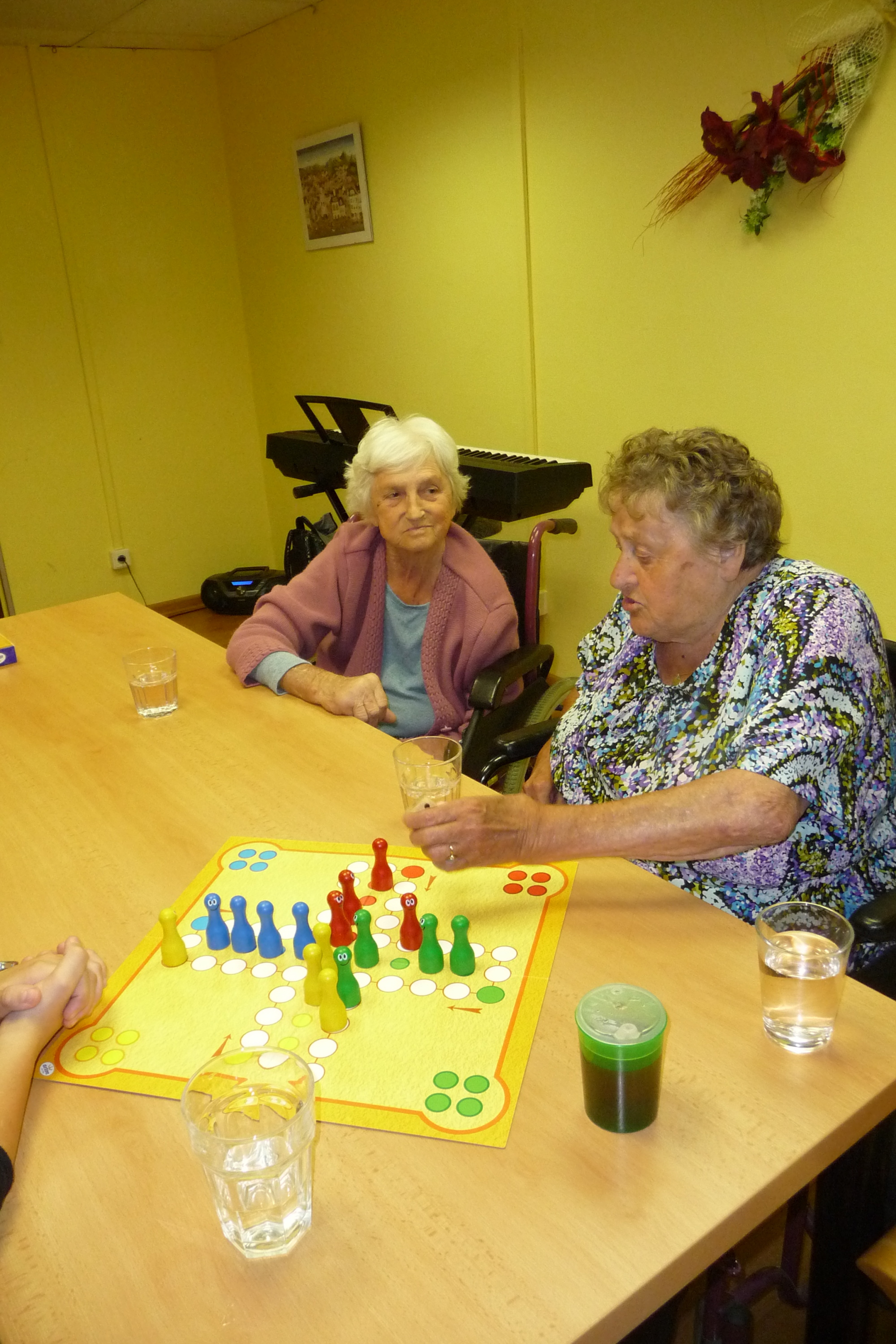 Žáci pomáhali některým našim uživatelům házet kostkou nebo posouvat figurky po ploše, a hra svižně utíkala. Bylo vidět, že trénují nejen děti, ale i naši "závodníci". Vyhrávali nejen mladší, ale i ti starší...a radost měli všichni.