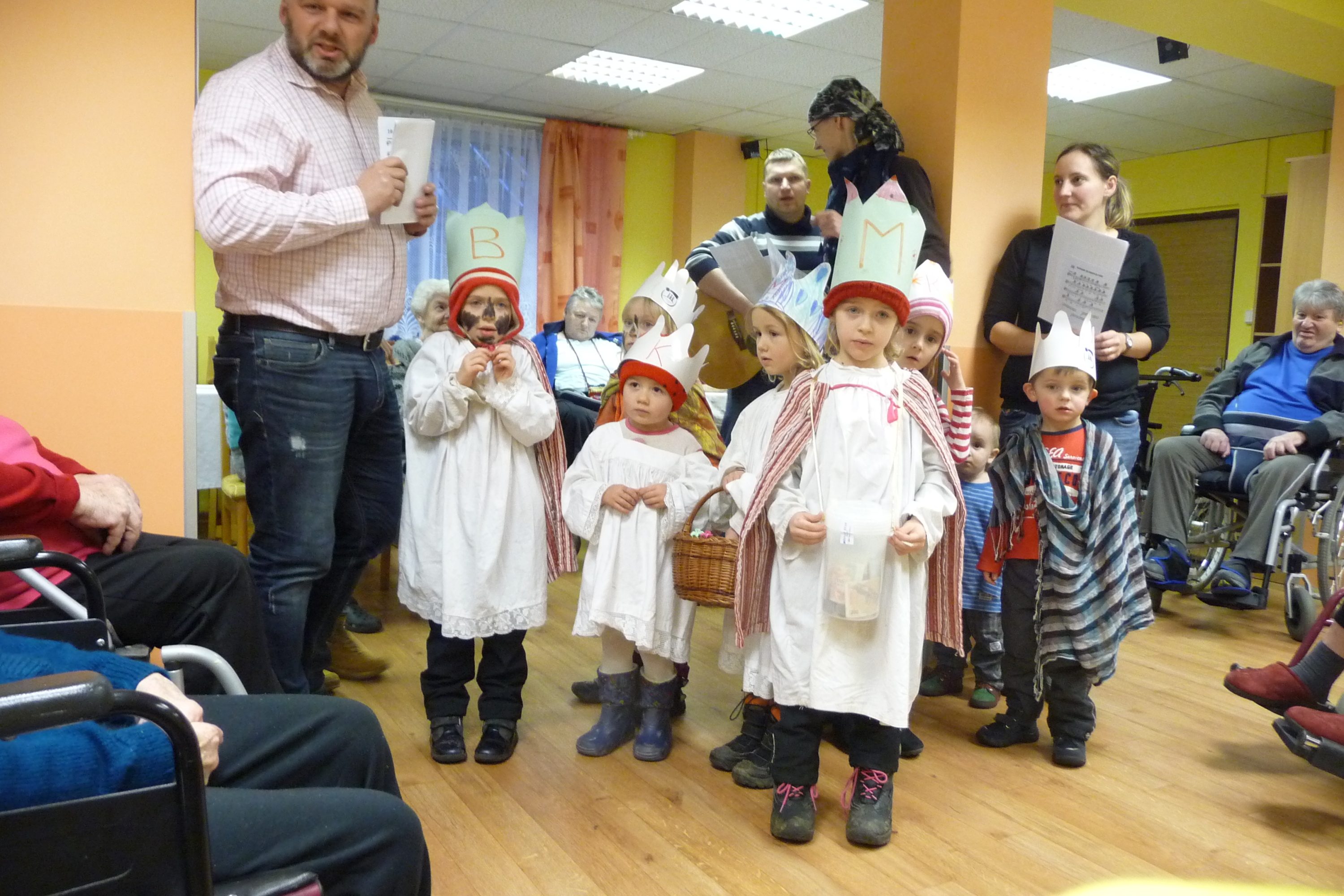 Ve čtvrtek 11. ledna přišli koledníci i do našeho zařízení. Zde zazpívali písničky a zahráli na hudební nástroje....hlavní úkol byl také splněn, i u nás se jim povedlo vybrat drobné dary do kasiček....