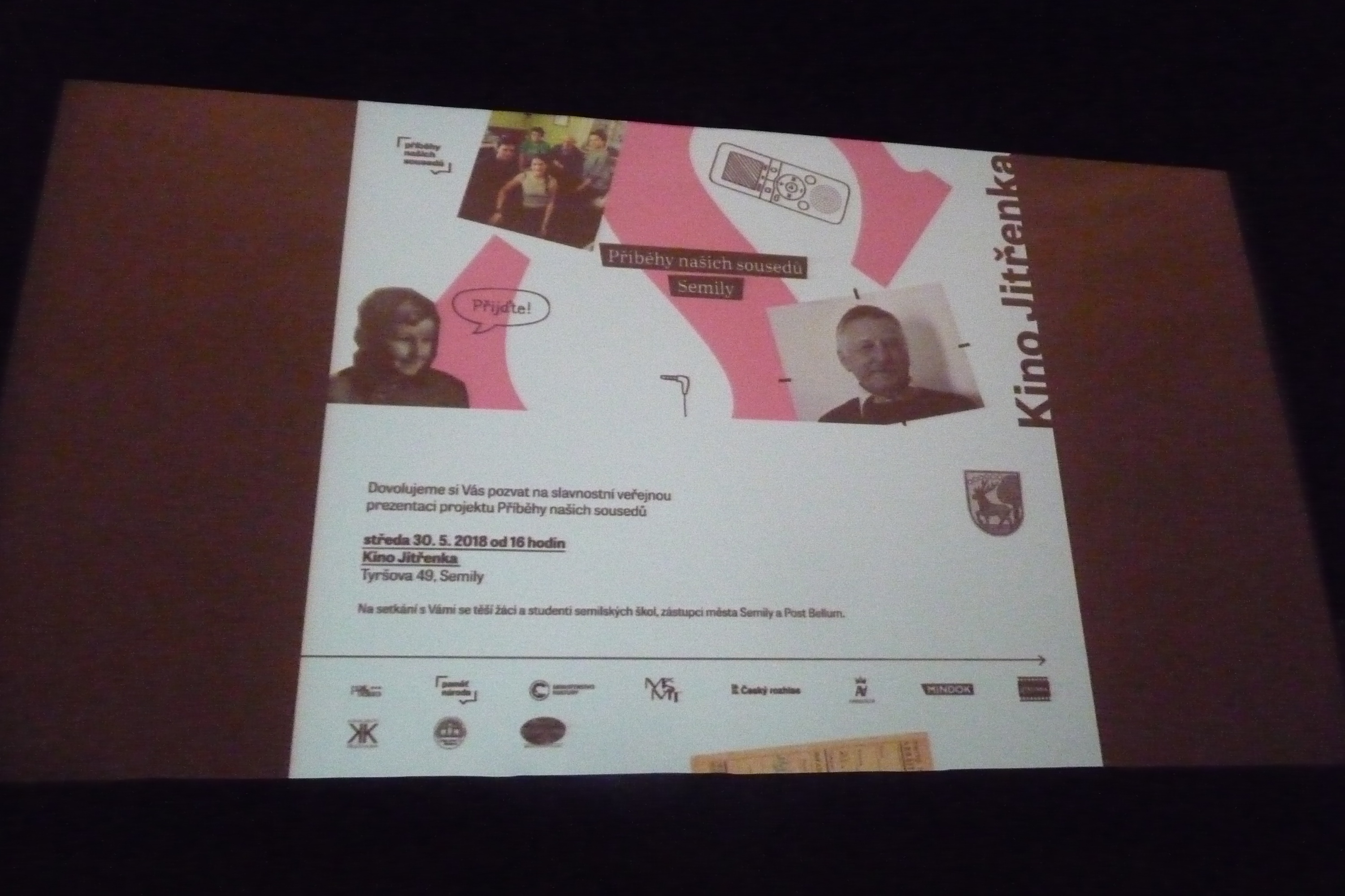 30. května odpoledne proběhla v kině Jitřenka veřejná prezentace životních příběhů lidí, jejichž život byl nebo je spojen s naším městem. Mezi příběhy byly i životní cesty dvou našich uživatelů - paní Marianne Karešové a pana Rudolfa Daníčka. Ti měli také možnost tuto projekci navštívit.