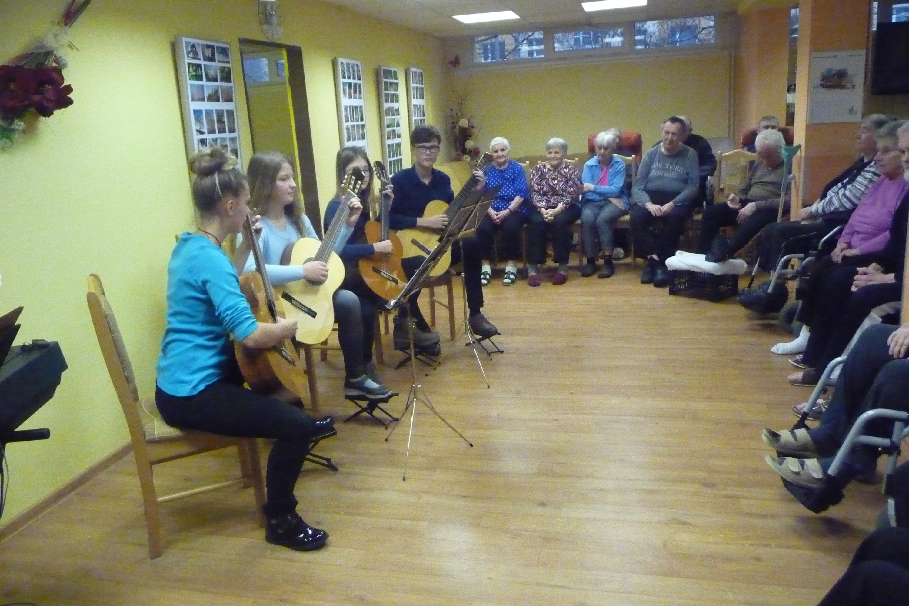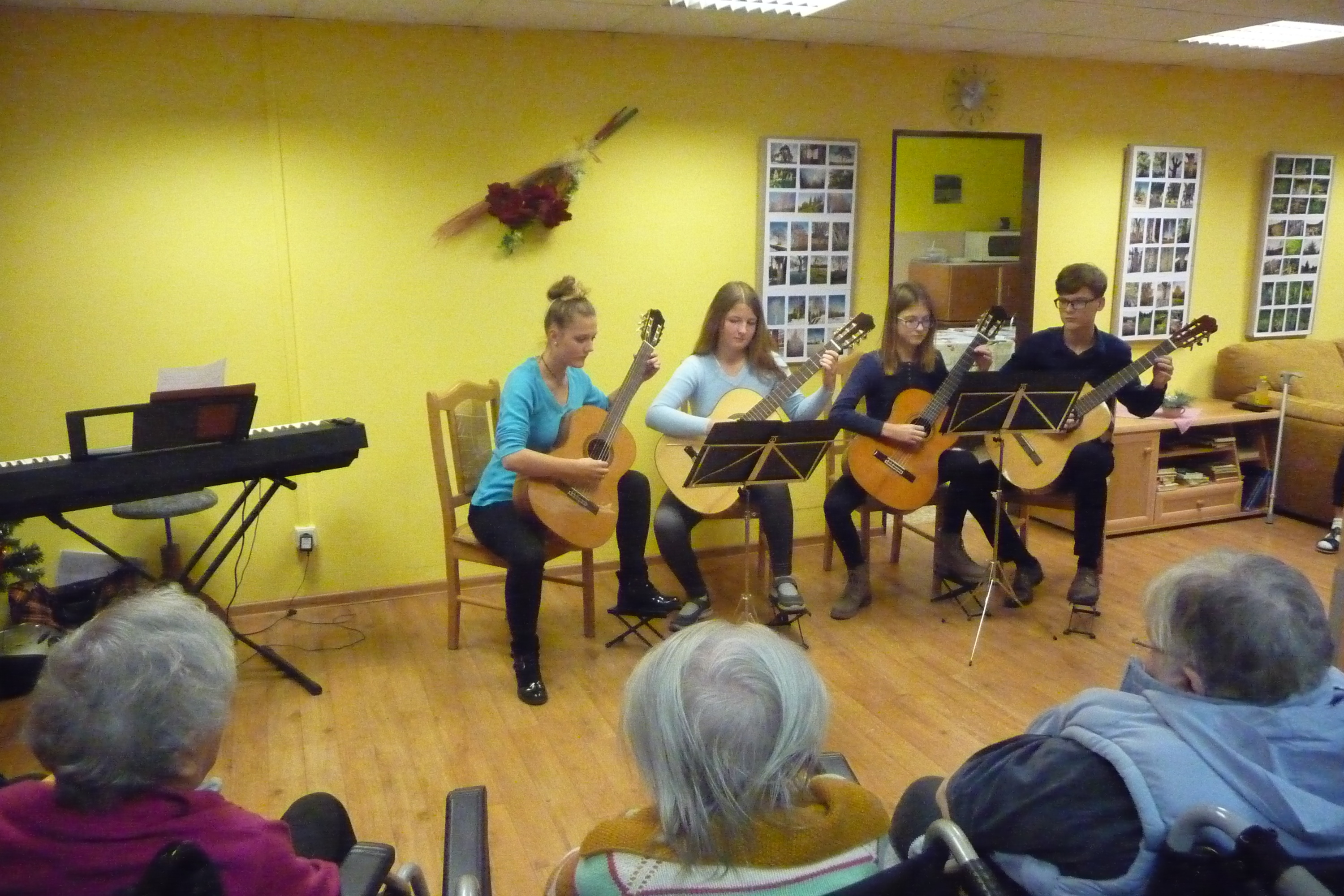 V pátek 7. prosince 2018 jsme shlédli slíbený koncertík klavíristů i kytaristů. Mladí umělci nám opět předvedli to, co se učí v semilské ZUŠ. Zbytek muzikoterapie jsme si opět zazpívali, zahráli a poslechli krásné melodie.