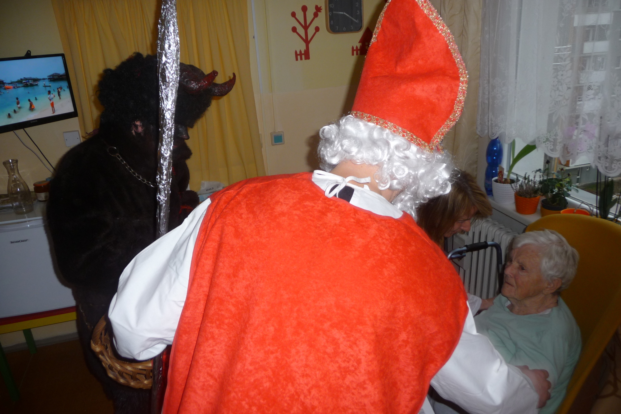 se prošli 4. prosince dopoledne celým našim domovem. V každém pokoji na každém patře se zastavili a předali balíček s dobrotami.