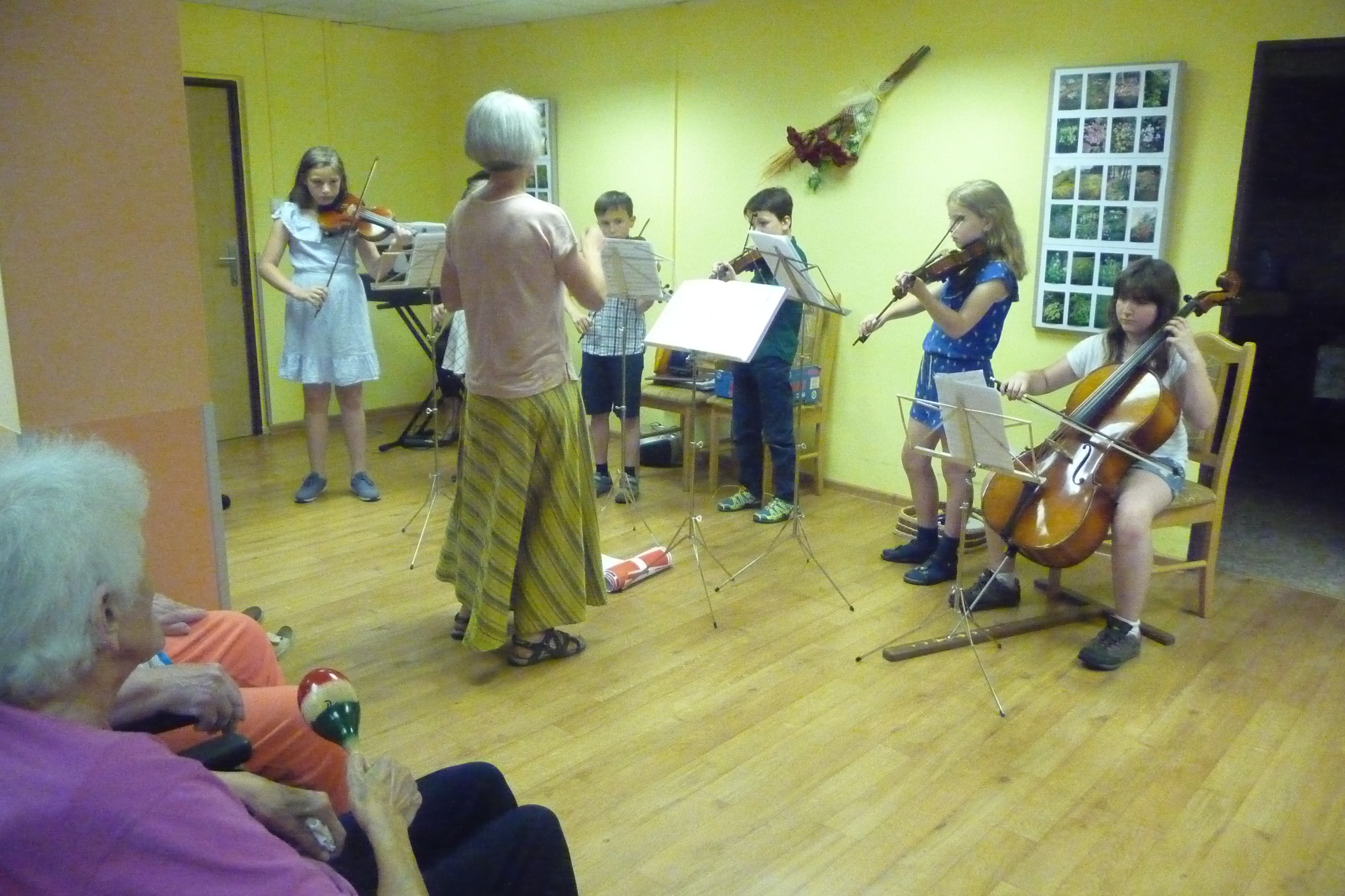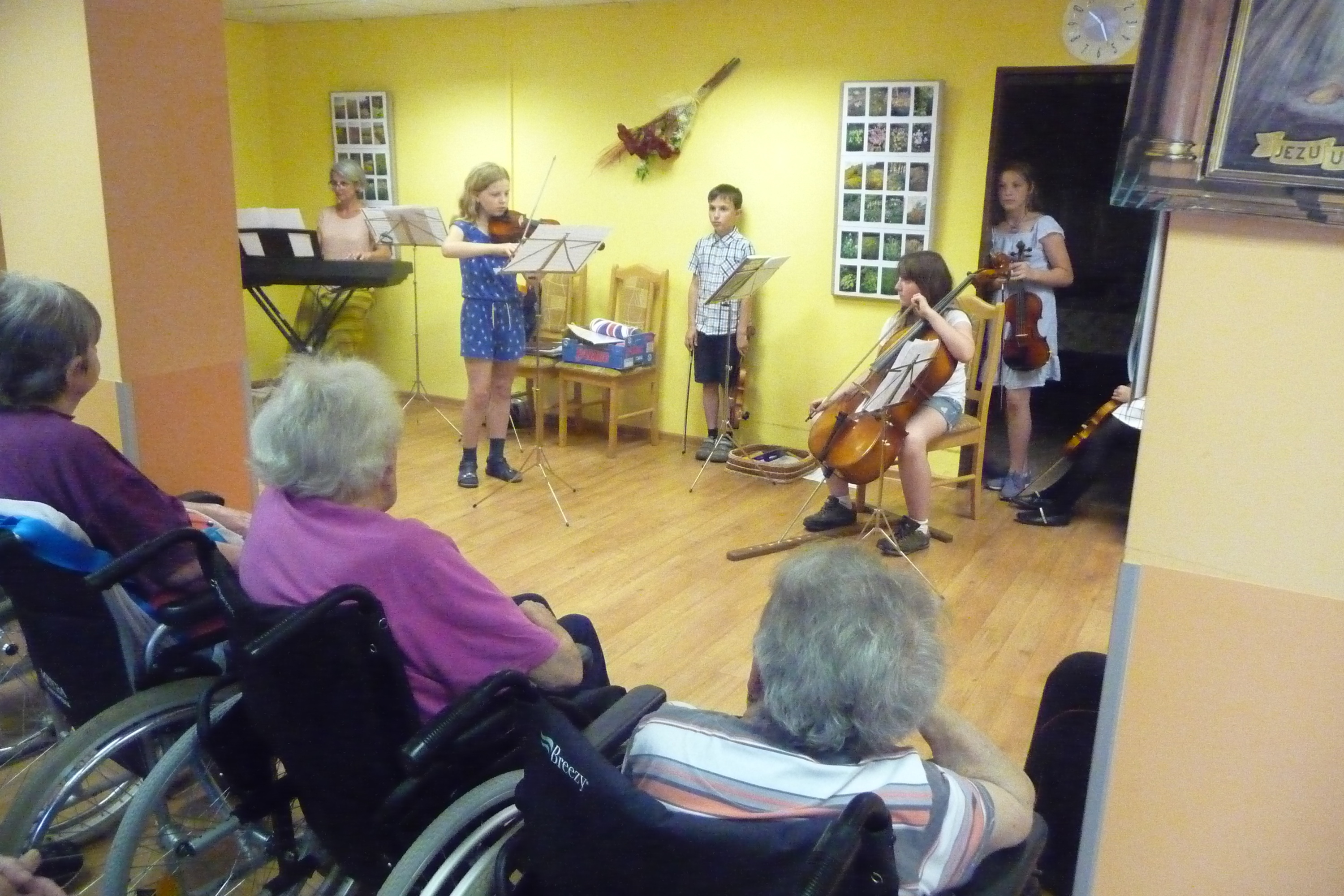 Každý pátek se setkáváme v kulturní místnosti při hodince muzikoterapie s paní Jarmilou Ochmanovou. Hodinka je vždy naplněna hudbou, poslechem, zpěvem, hudebními hádankami. Někdy posloucháme a někdy také doprovázíme na drobné hudební nástroje. V pátek 20. června jsme měli možnost poslechnout si hudební produkci žáků ZUŠ v Semilech.Koncertík malých hudebníků byl velmi pěkný. Děkujeme