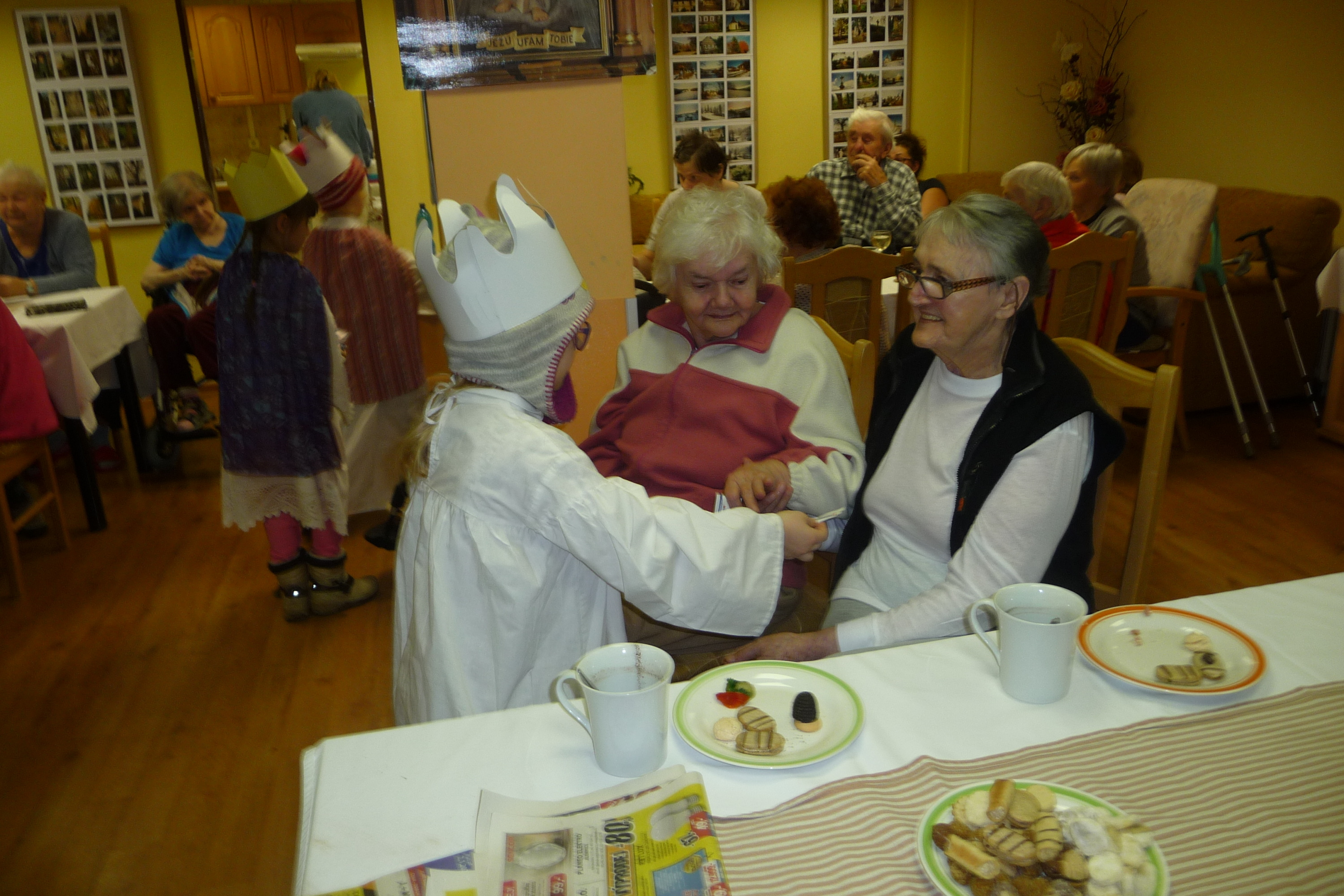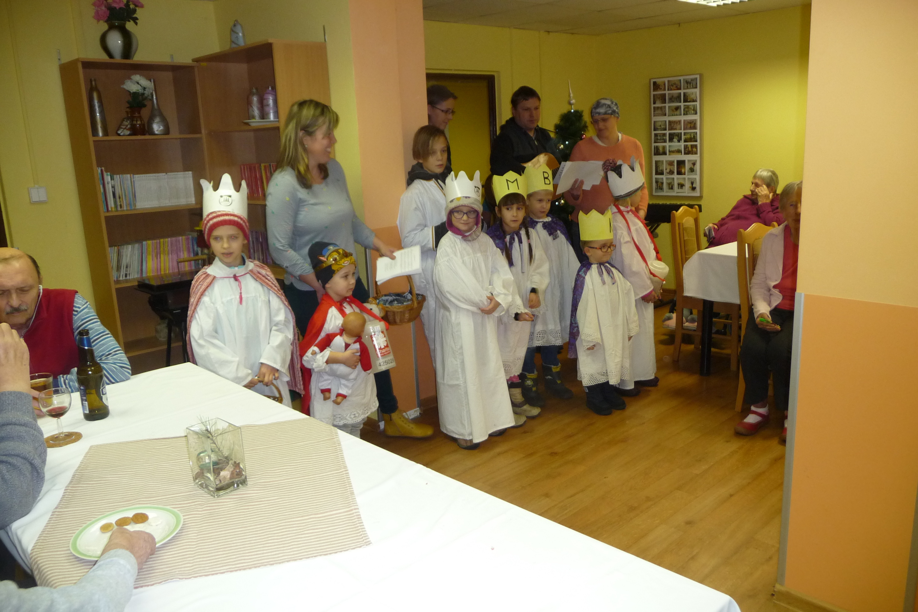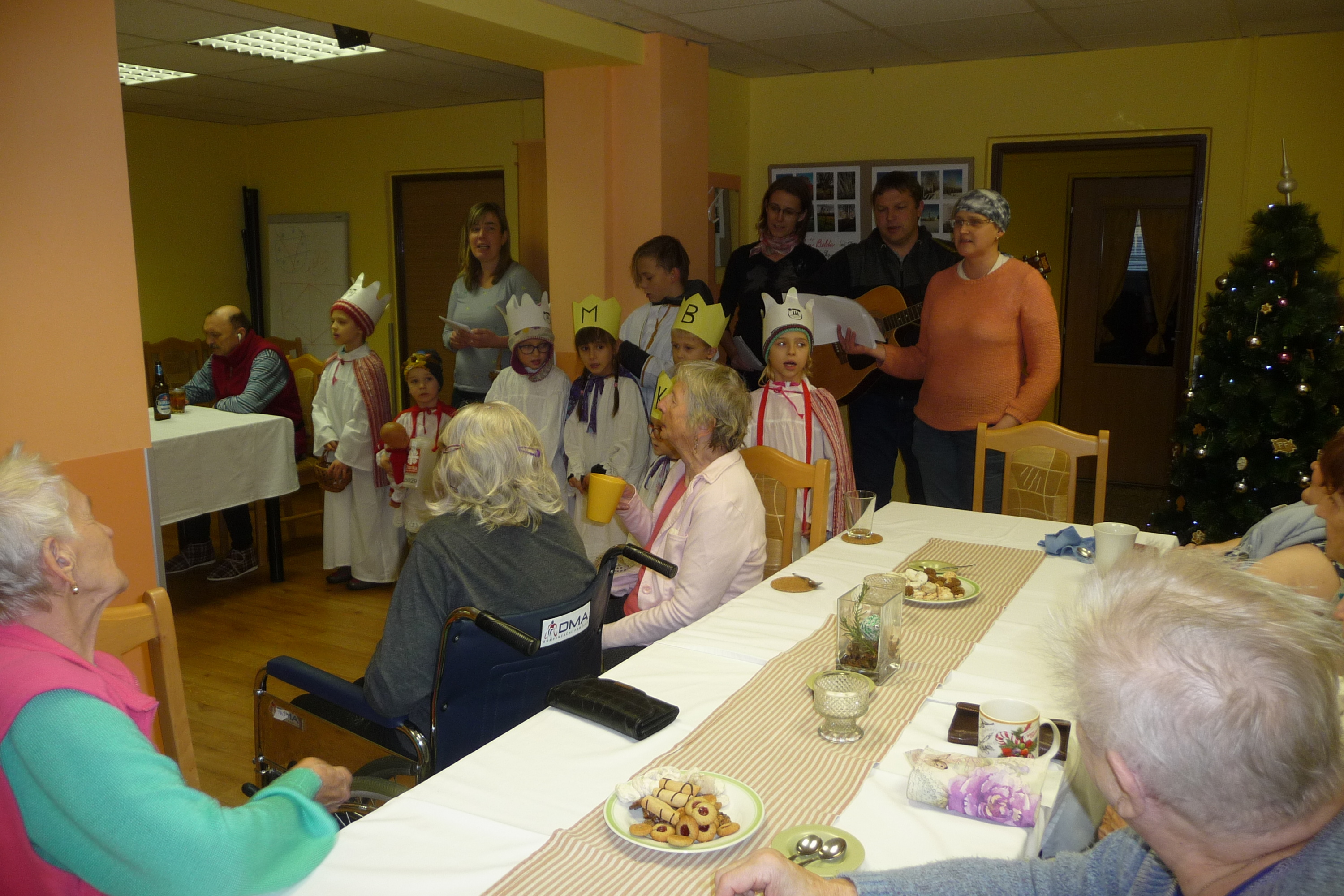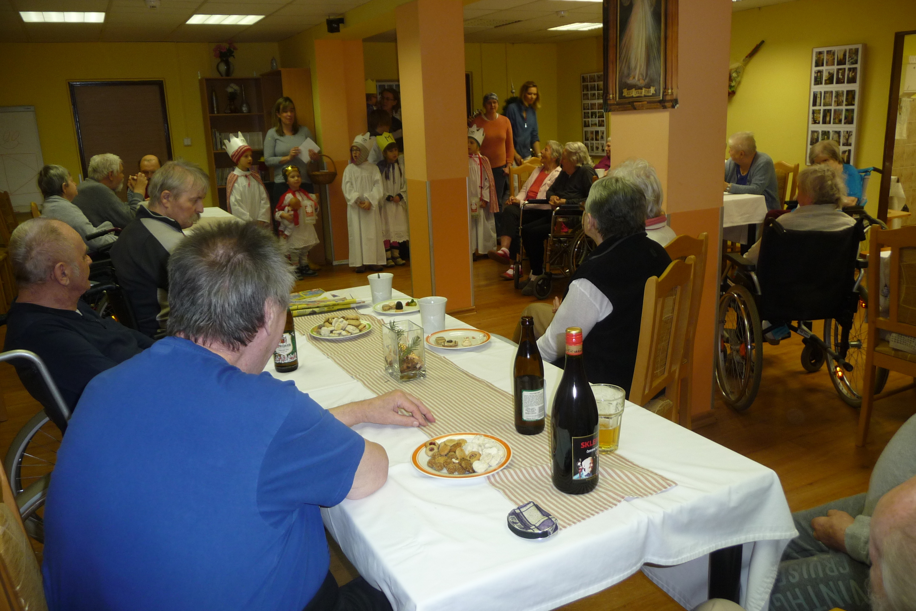 Ve čtvrtek 9. ledna u nás proběhla Růžová cukrárna a na konci posezení k nám přišli opět děti s tří královou sbírkou. Po několik koledách se rozešli mezi naše uživatele, kteří již měli přichystaný drobný peníz do kasičky malým koledníkům. Všichni můžou pomoci.
