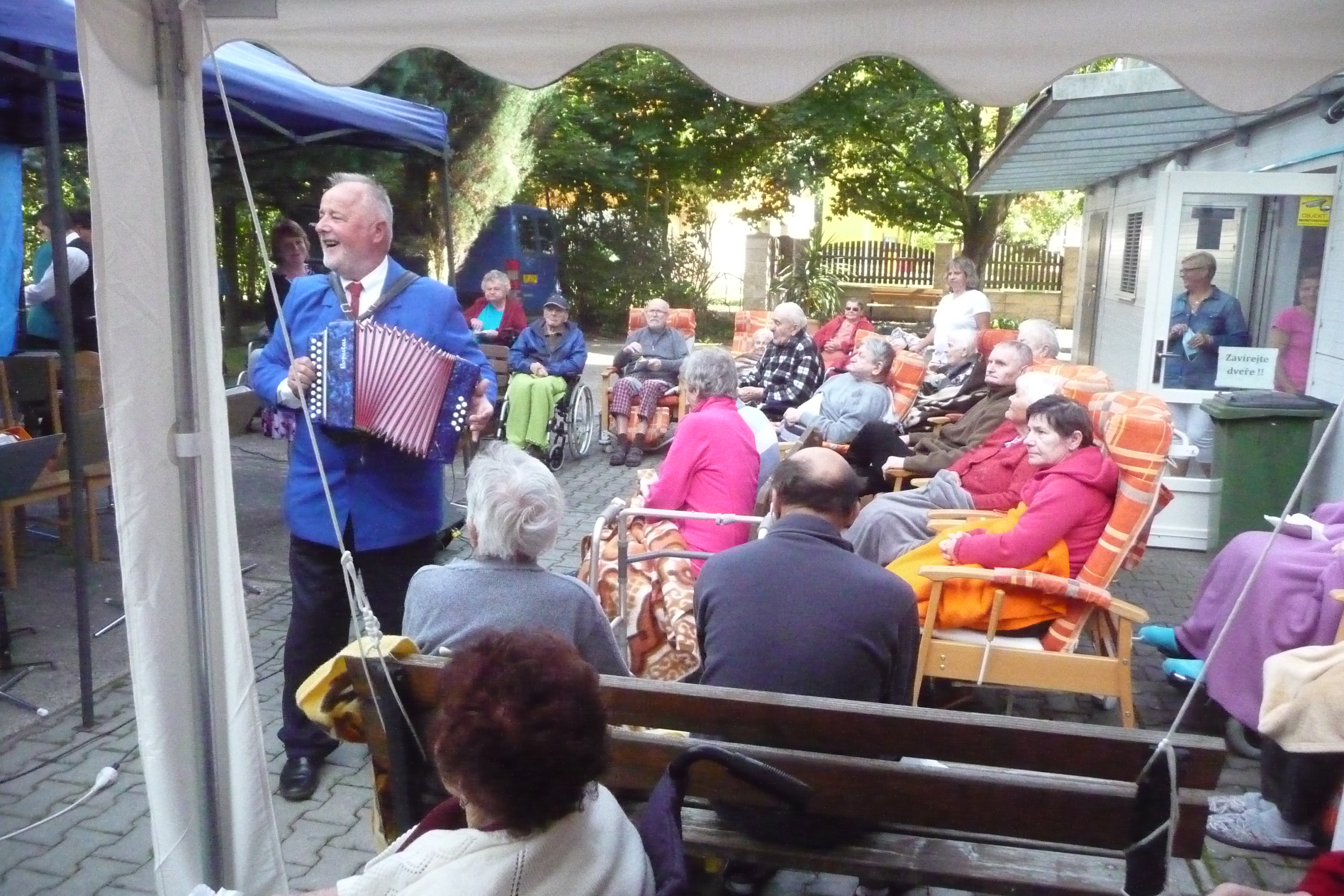 I letošní rok jsme neporušili tradici a léto jsme zakončili koncertem v zahradě. K poslechu i k tanci nám zahrála dechová hudba Semilská 12. Volné chvilky vyplňovat hrou na harmoniku náš oblíbený pan Jaroslav Křapka. Jako občerstevní se podávaly čerstve pečené "sejkory". Velkými pomocníky nejen na pečení, ale i na pomoc s jejich rozdáním byli opět semilští Skauti, tentokrát pod vedením Pitího :-)