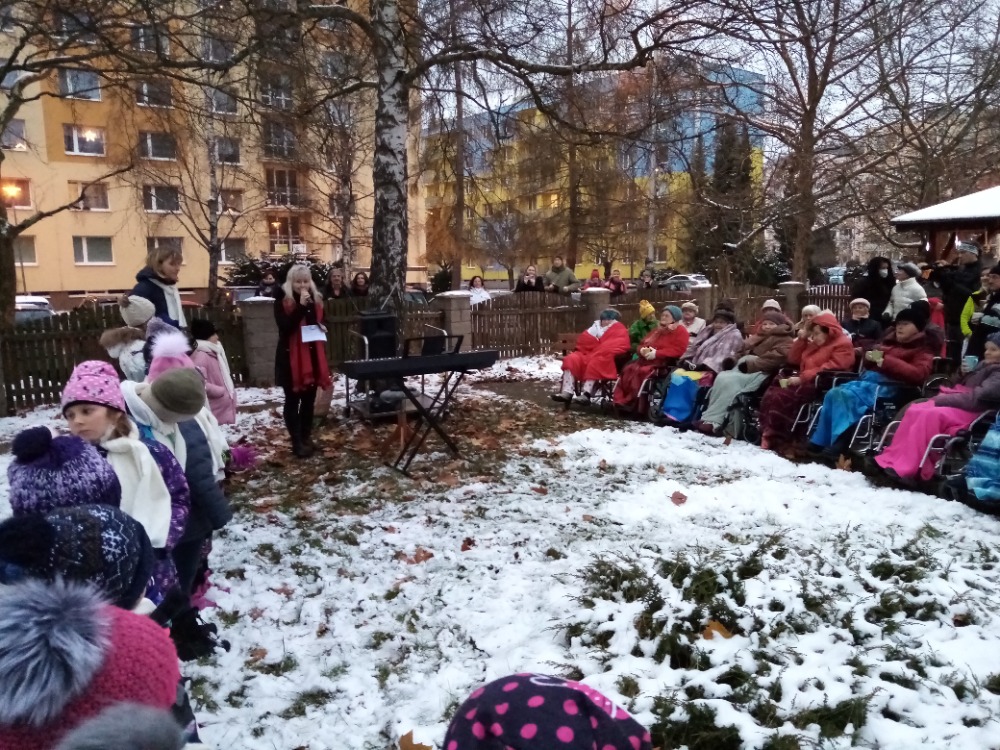Teplo nebylo, přesto se v zahradě sešlo více než 40 uživatelů, aby si poslechli koncertík Kokrháčku, zahřáli se teplým čajem vylepšeným šťopičkou něčeho dobrého, prohlédli úplně nový betlém v altánku a ještě se potěšili několika skladbami na saxofon, které nám zde zahrál Richard Mlejnek.