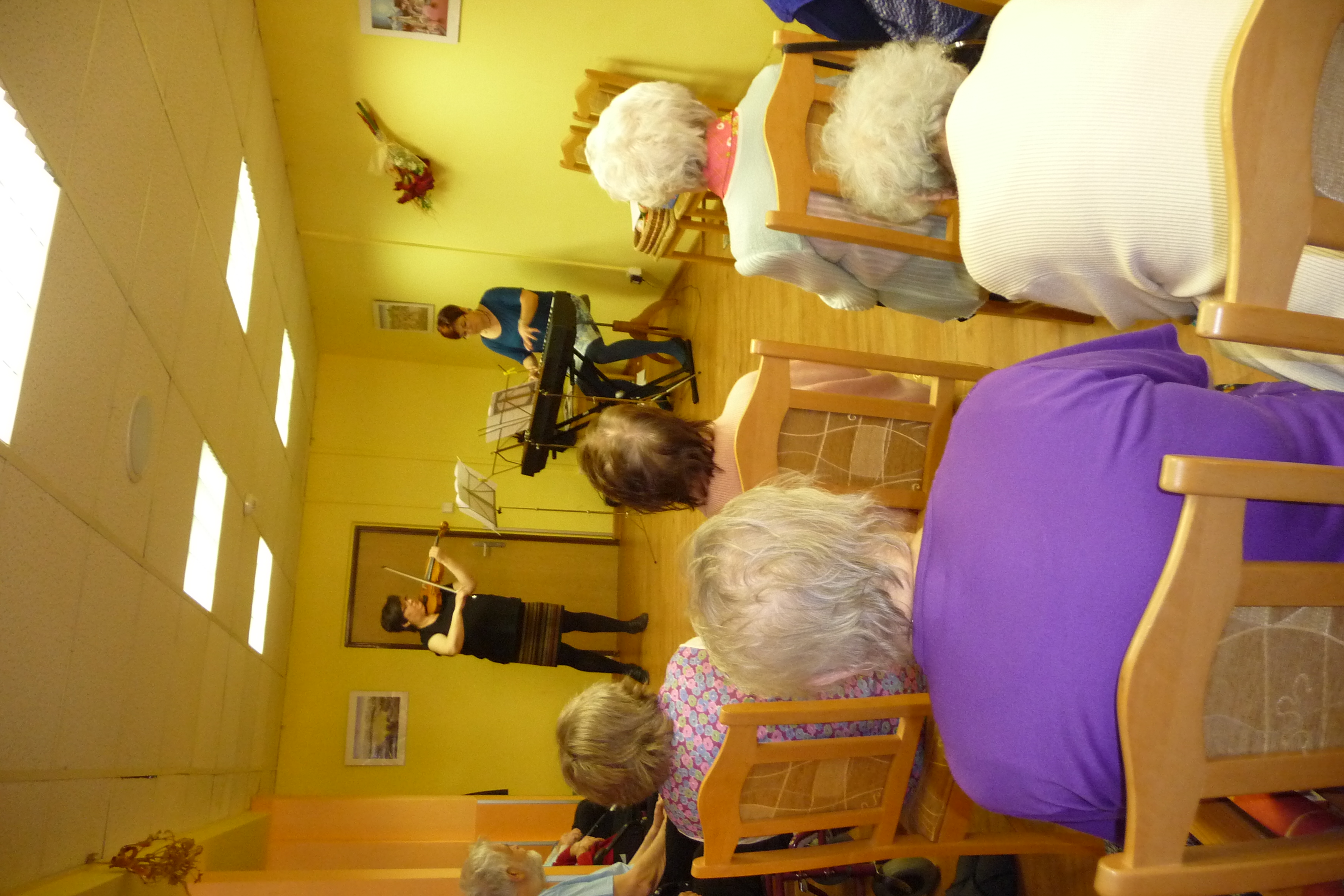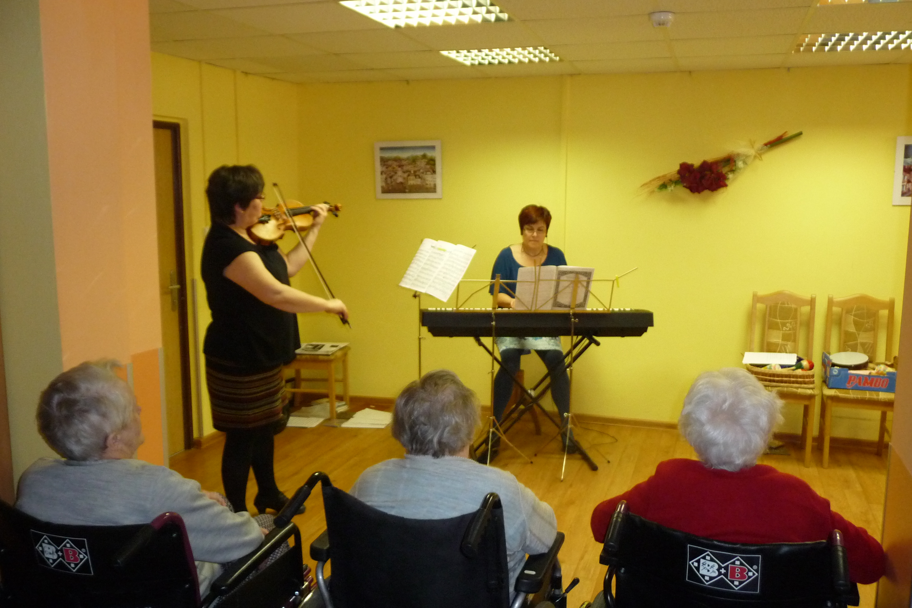 Dnes nám zahájil páteční muzikoterapii koncert učitelů paní Jarušky ochmanové - klavír a Jaroslavy Petráskové - housle