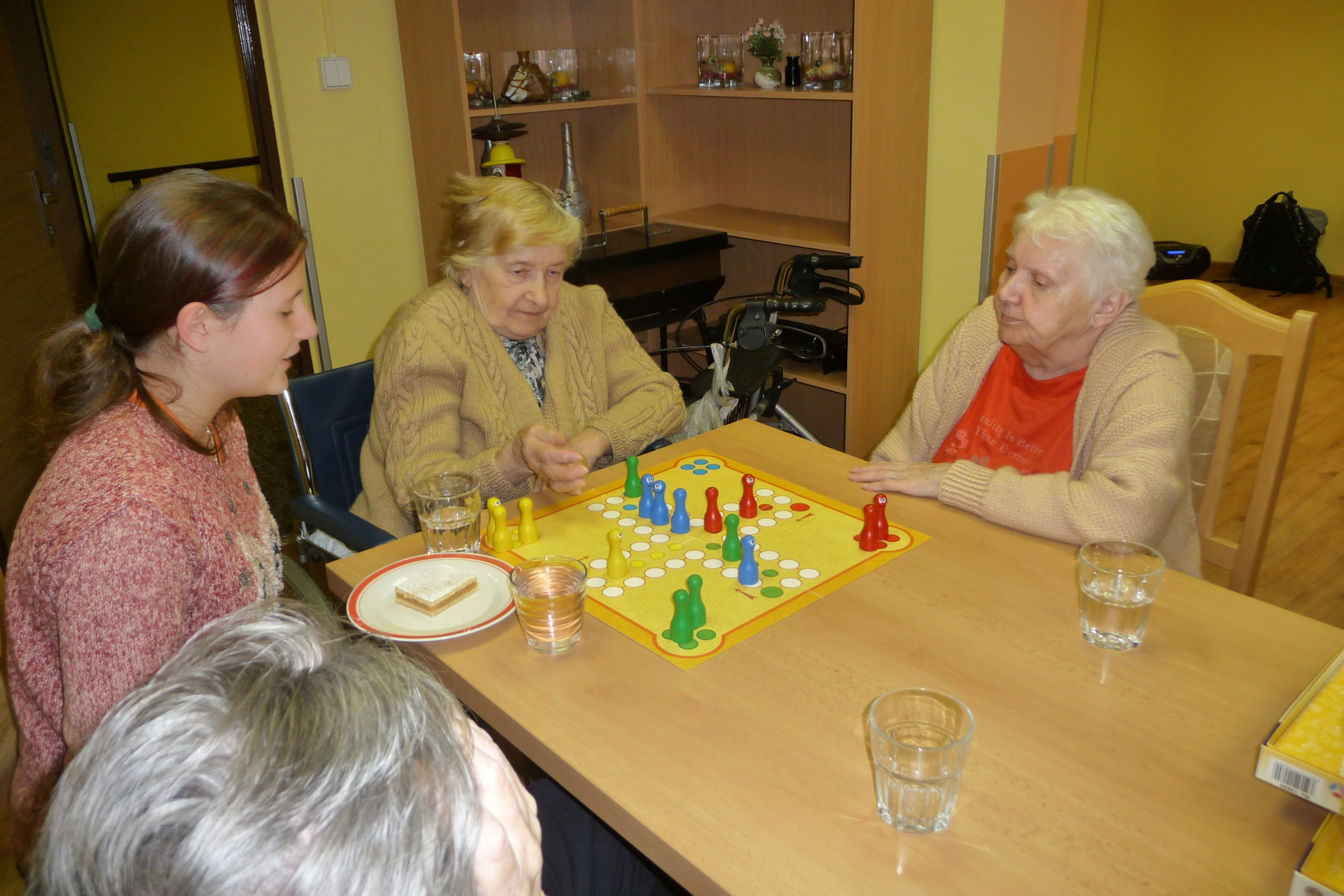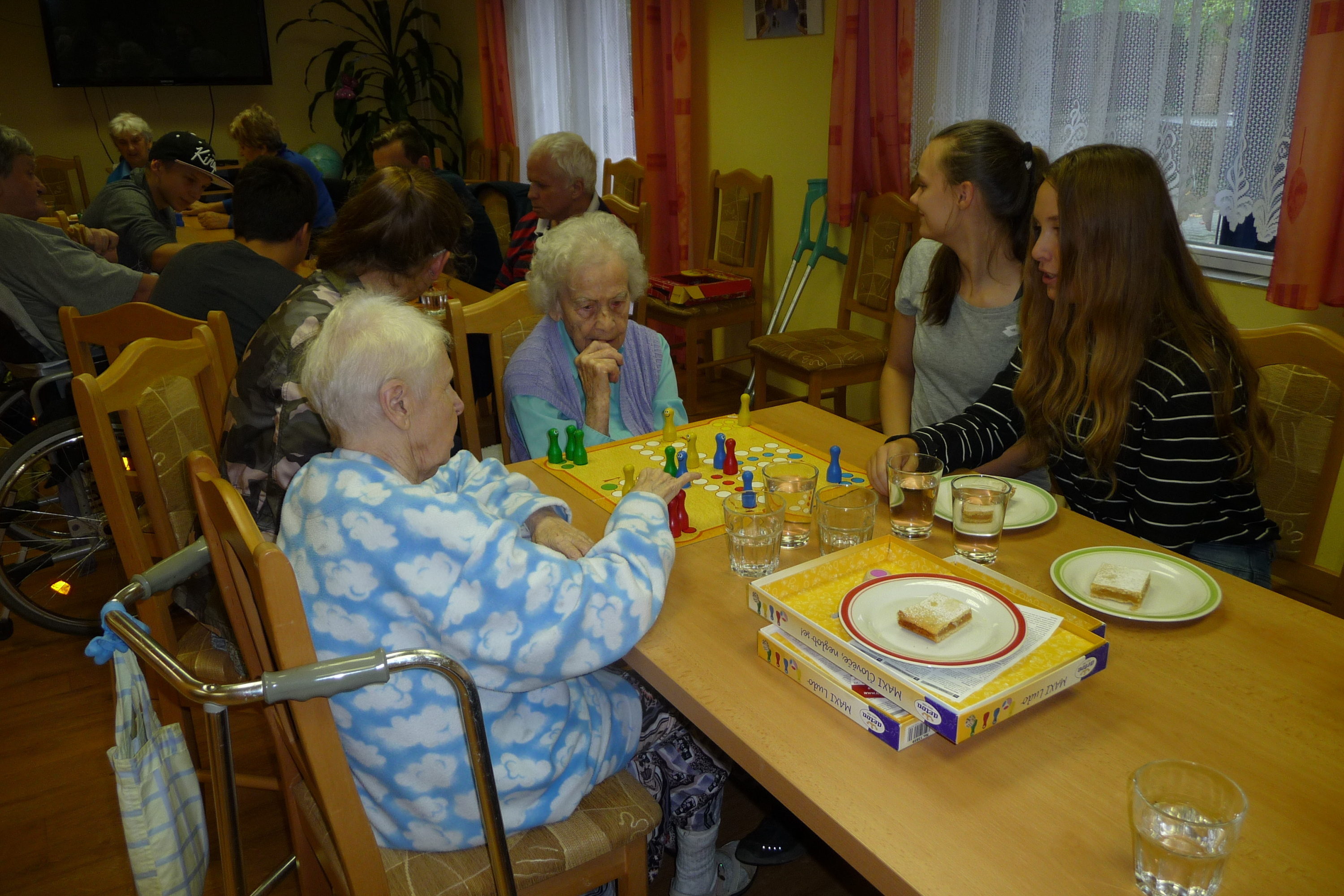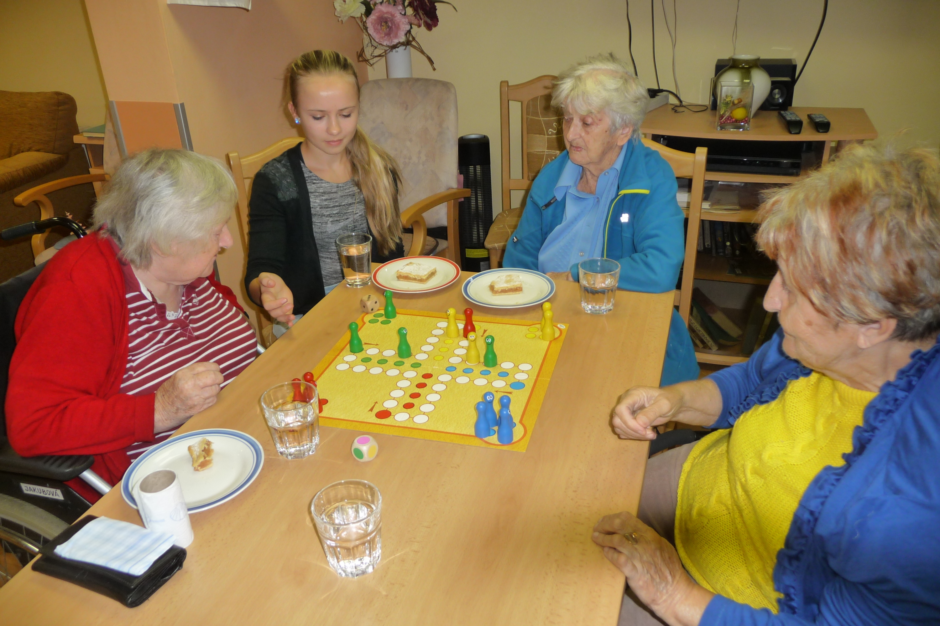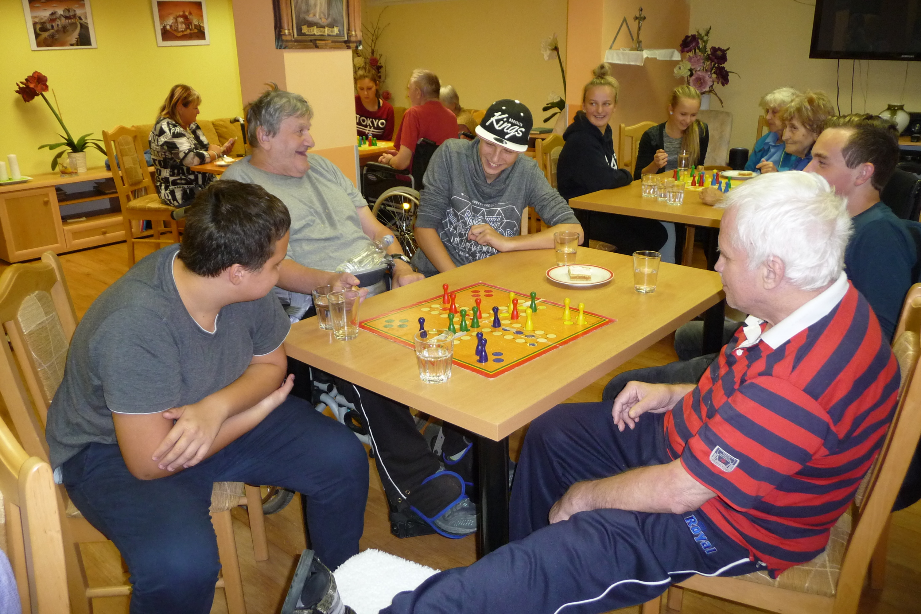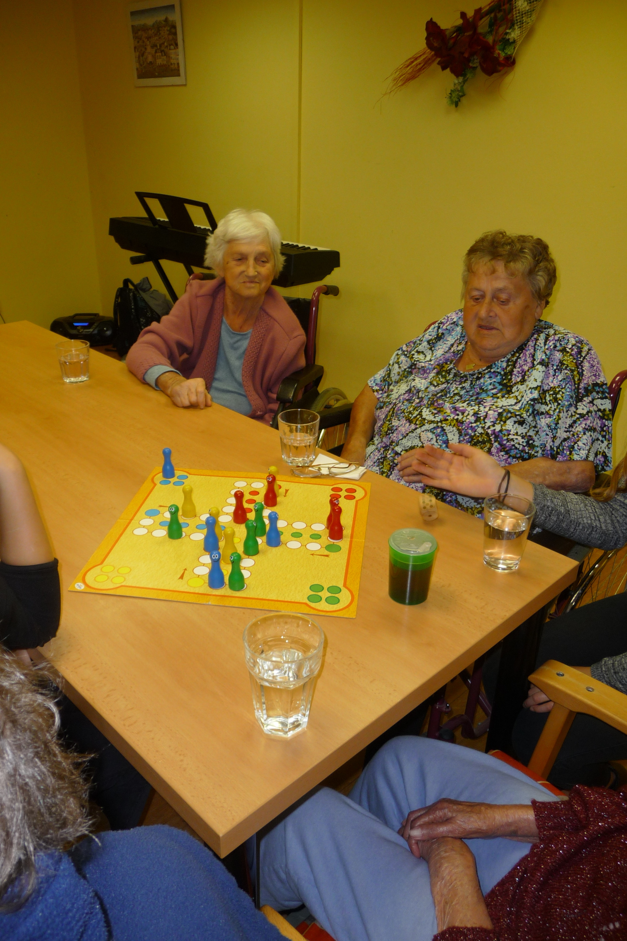Žáci pomáhali některým našim uživatelům házet kostkou nebo posouvat figurky po ploše, a hra svižně utíkala. Bylo vidět, že trénují nejen děti, ale i naši "závodníci". Vyhrávali nejen mladší, ale i ti starší...a radost měli všichni.