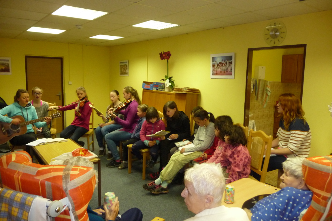 16. dubna odpoledne u nás vystoupily Světlušky - oddíl malých skautek s vedoucími. Hodinka - nejen trampských písniček - utekla jako voda. Mnozí si i rádi zazpívali s malými zpěvačkami.