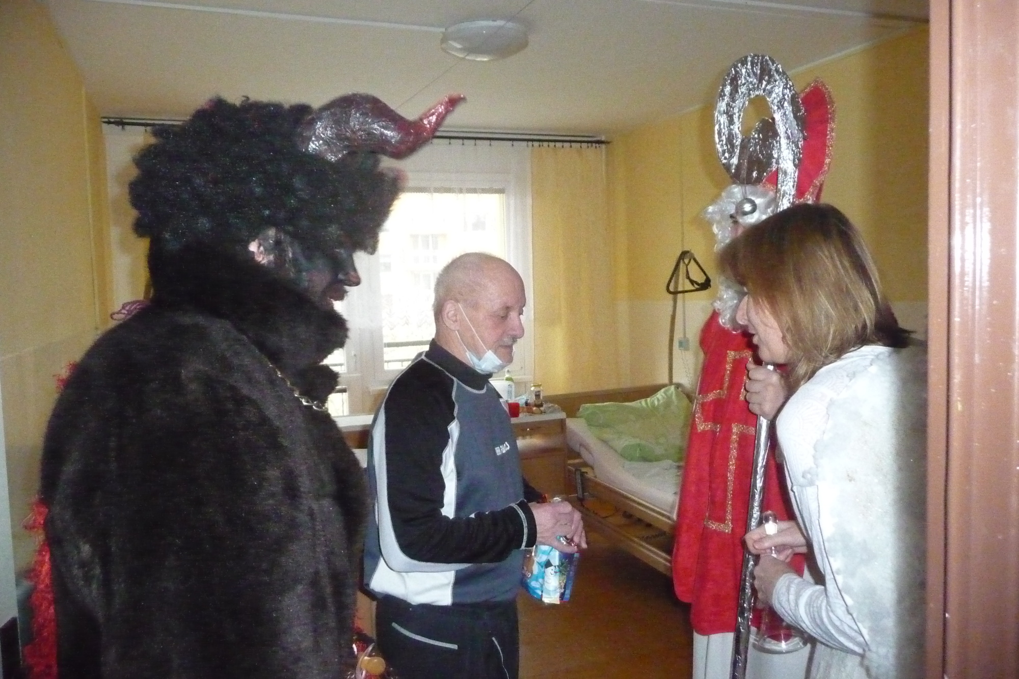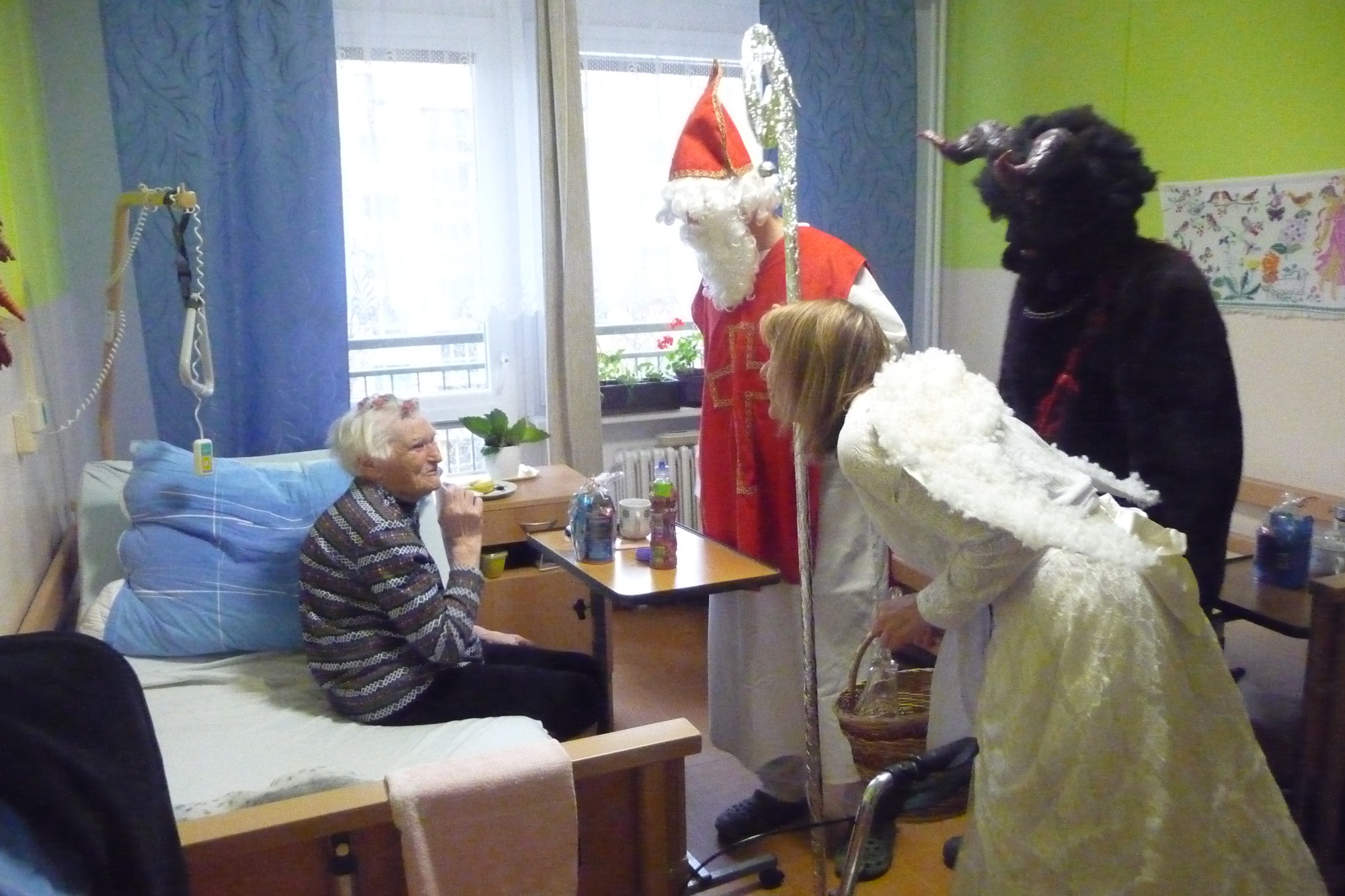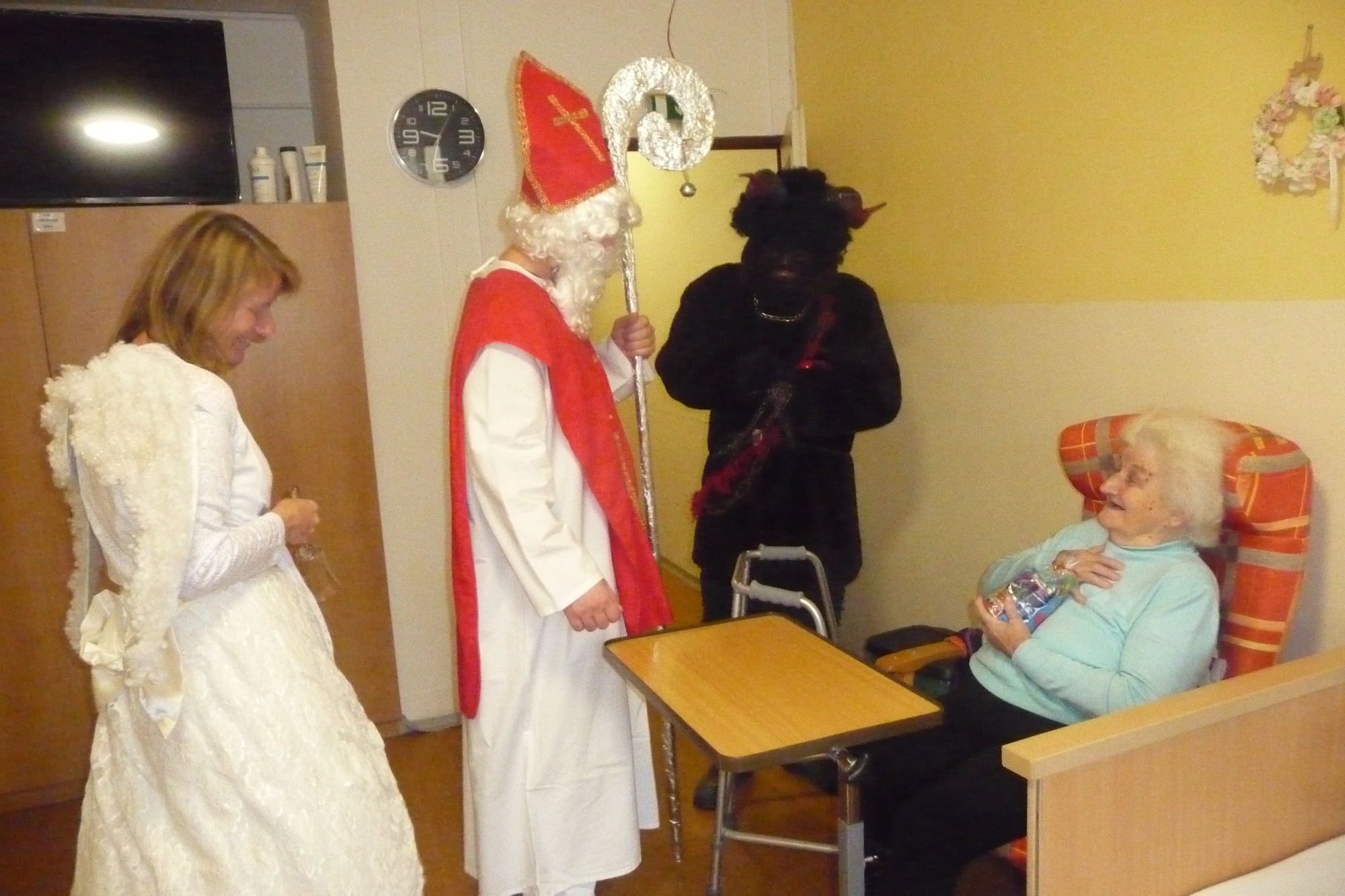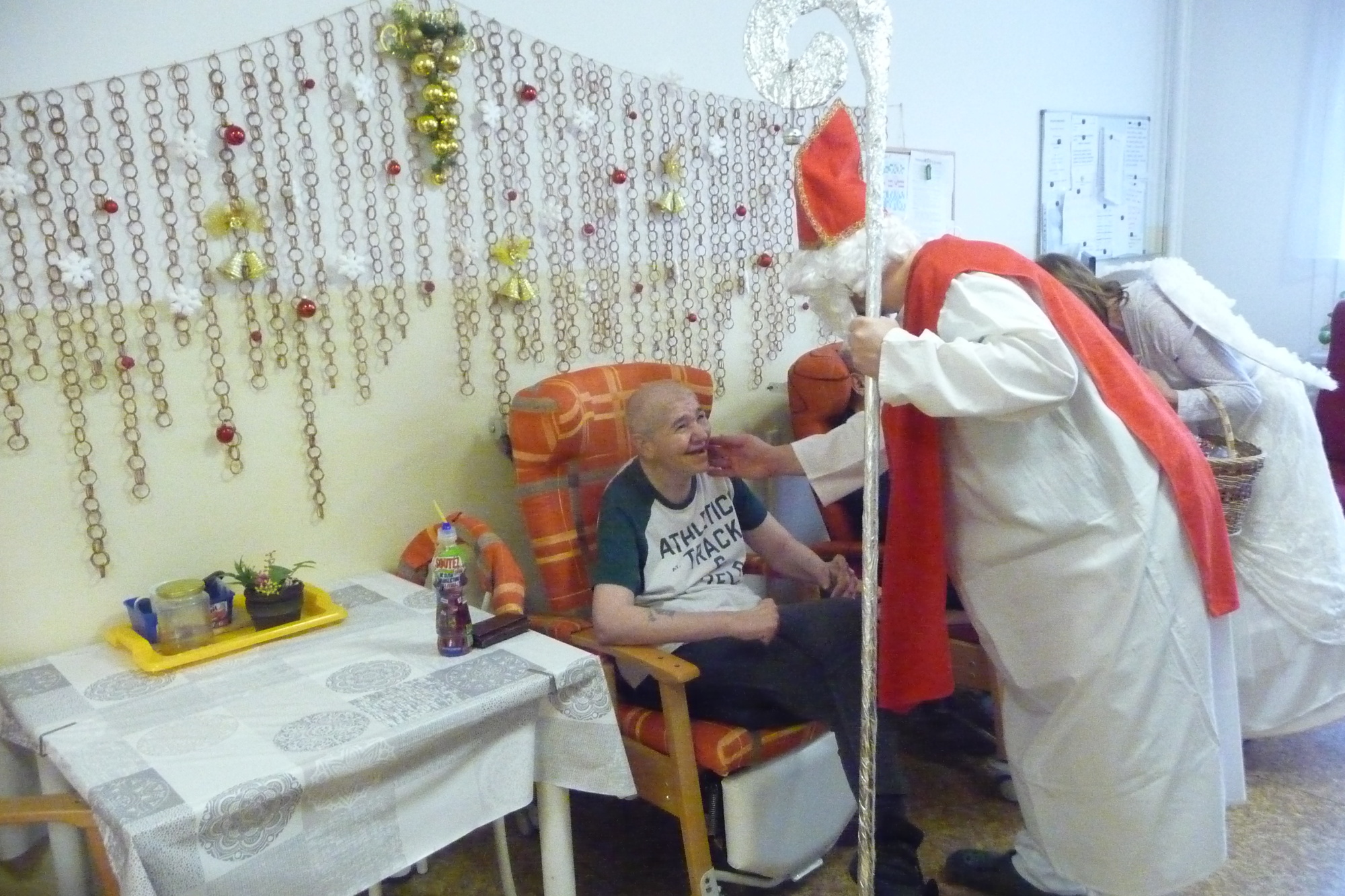 se prošli 4. prosince dopoledne celým našim domovem. V každém pokoji na každém patře se zastavili a předali balíček s dobrotami.