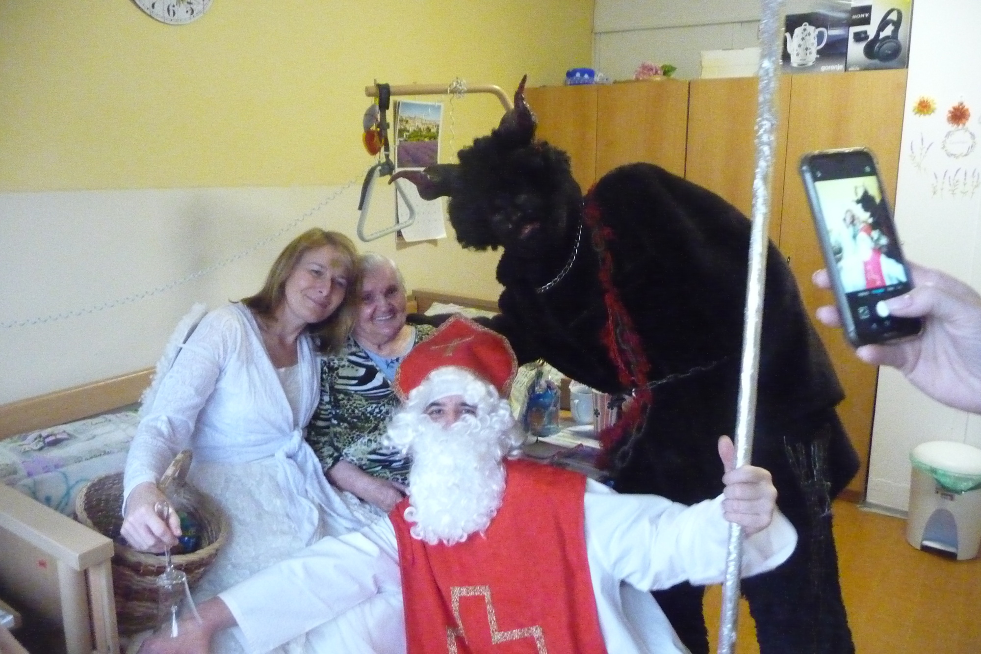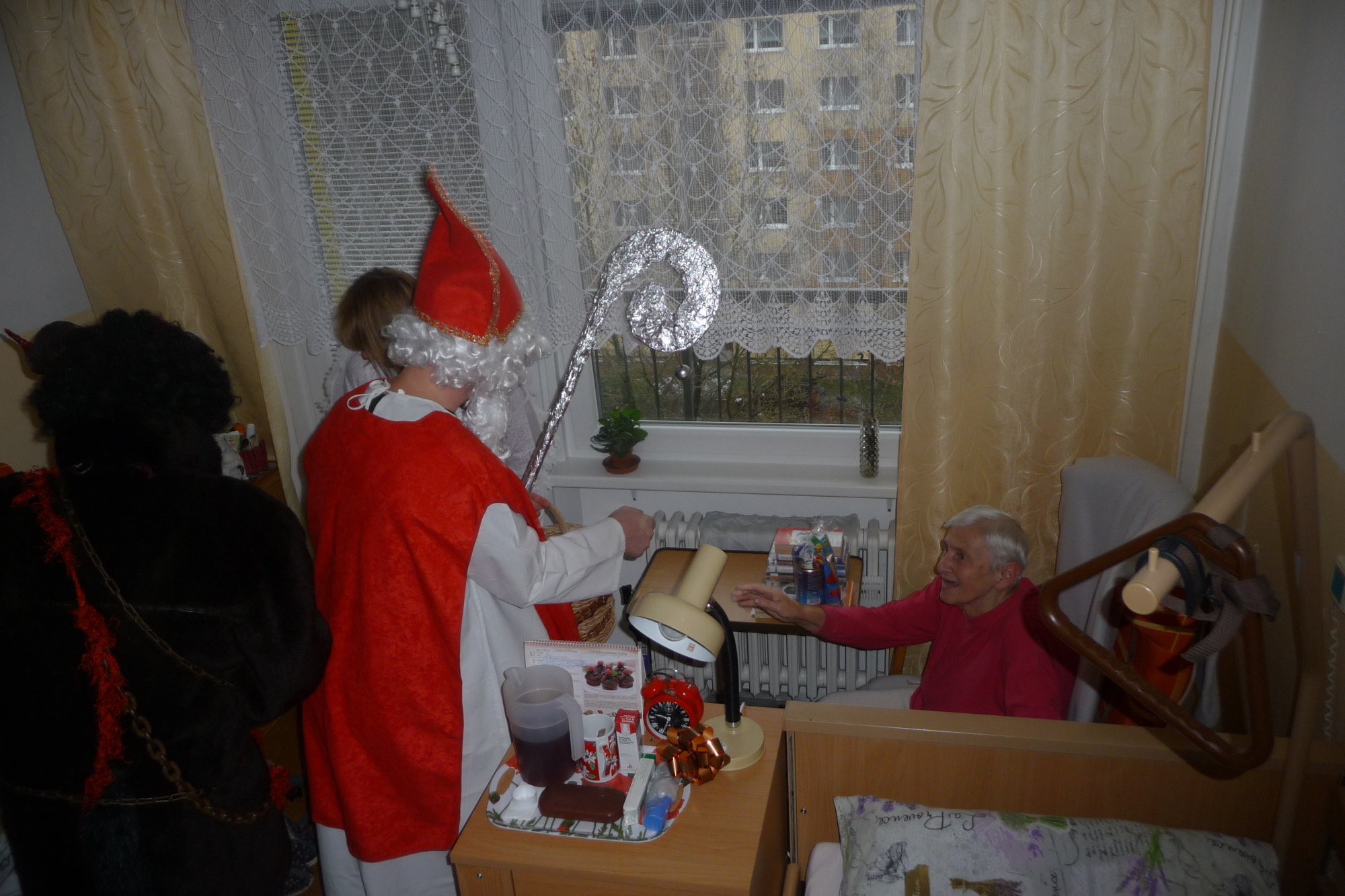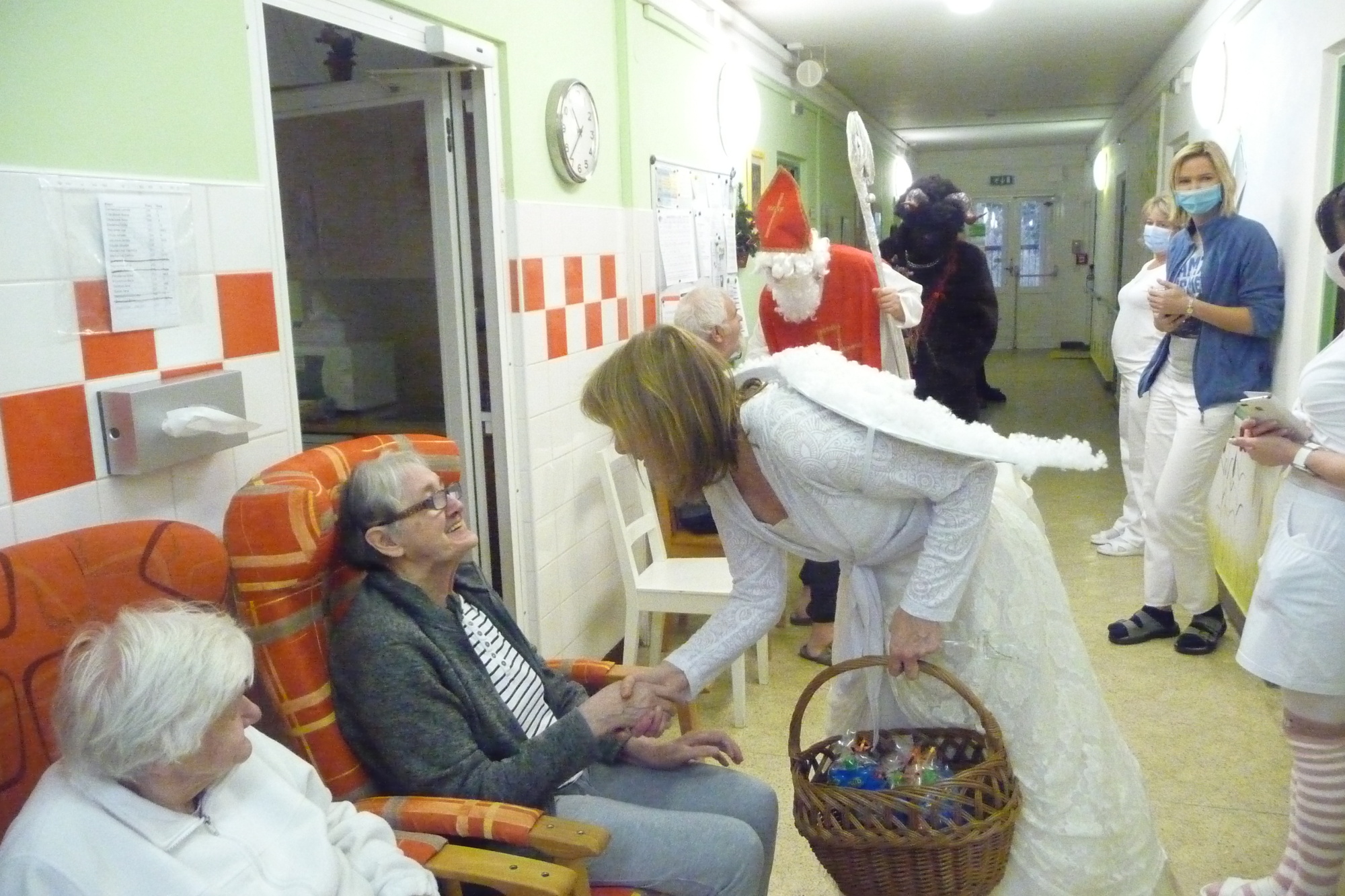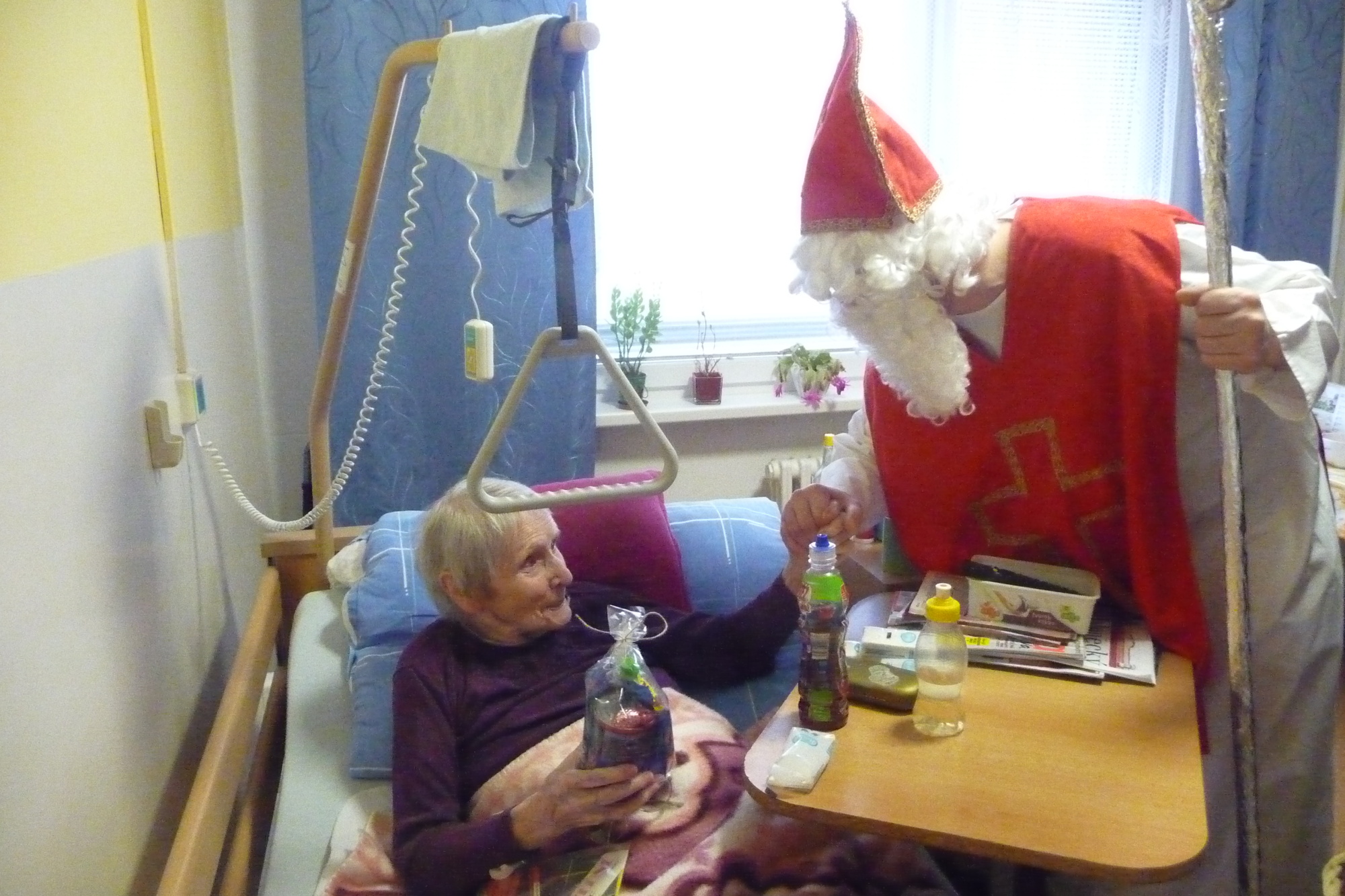 se prošli 4. prosince dopoledne celým našim domovem. V každém pokoji na každém patře se zastavili a předali balíček s dobrotami.