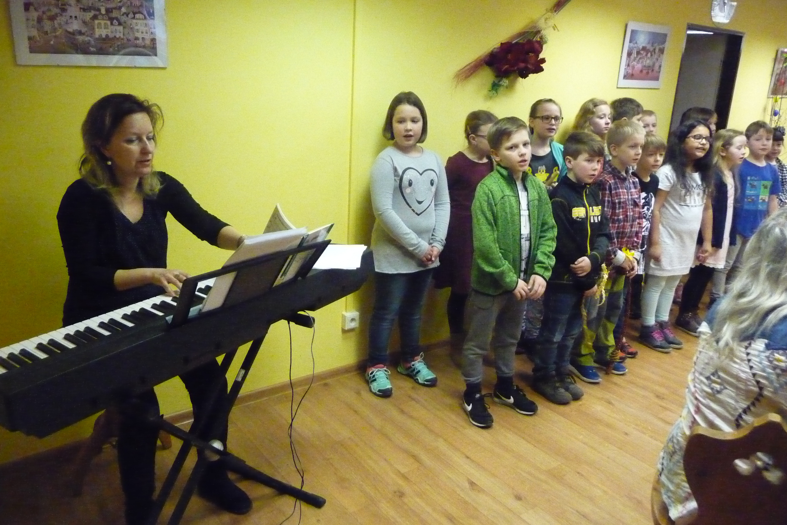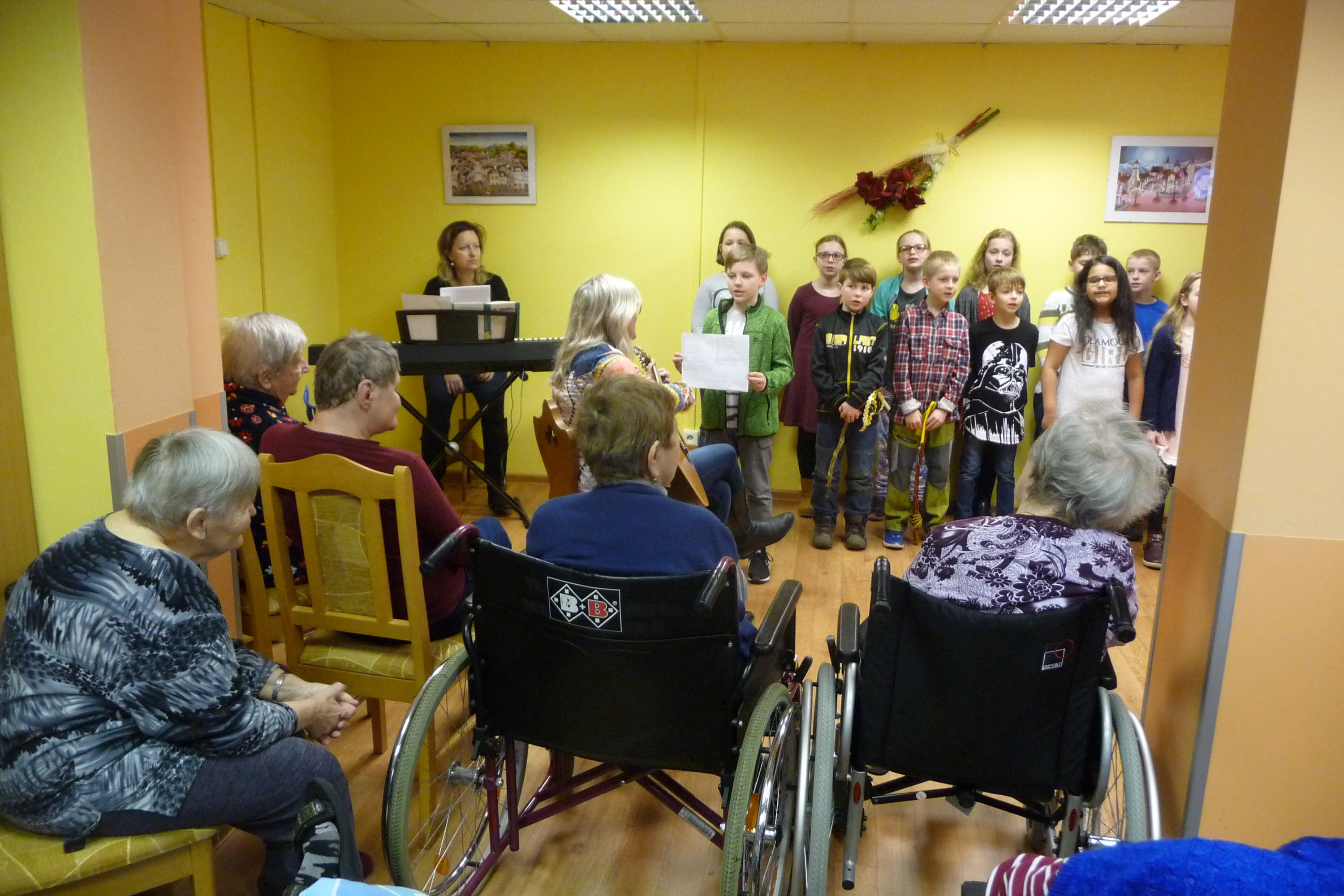 Ve středu 28. března dopoledne nás potěšili svým vystoupením žáčci ze ZŠ Dr. Fr. L. Riegra, kteří u nás zpívali i tančili.