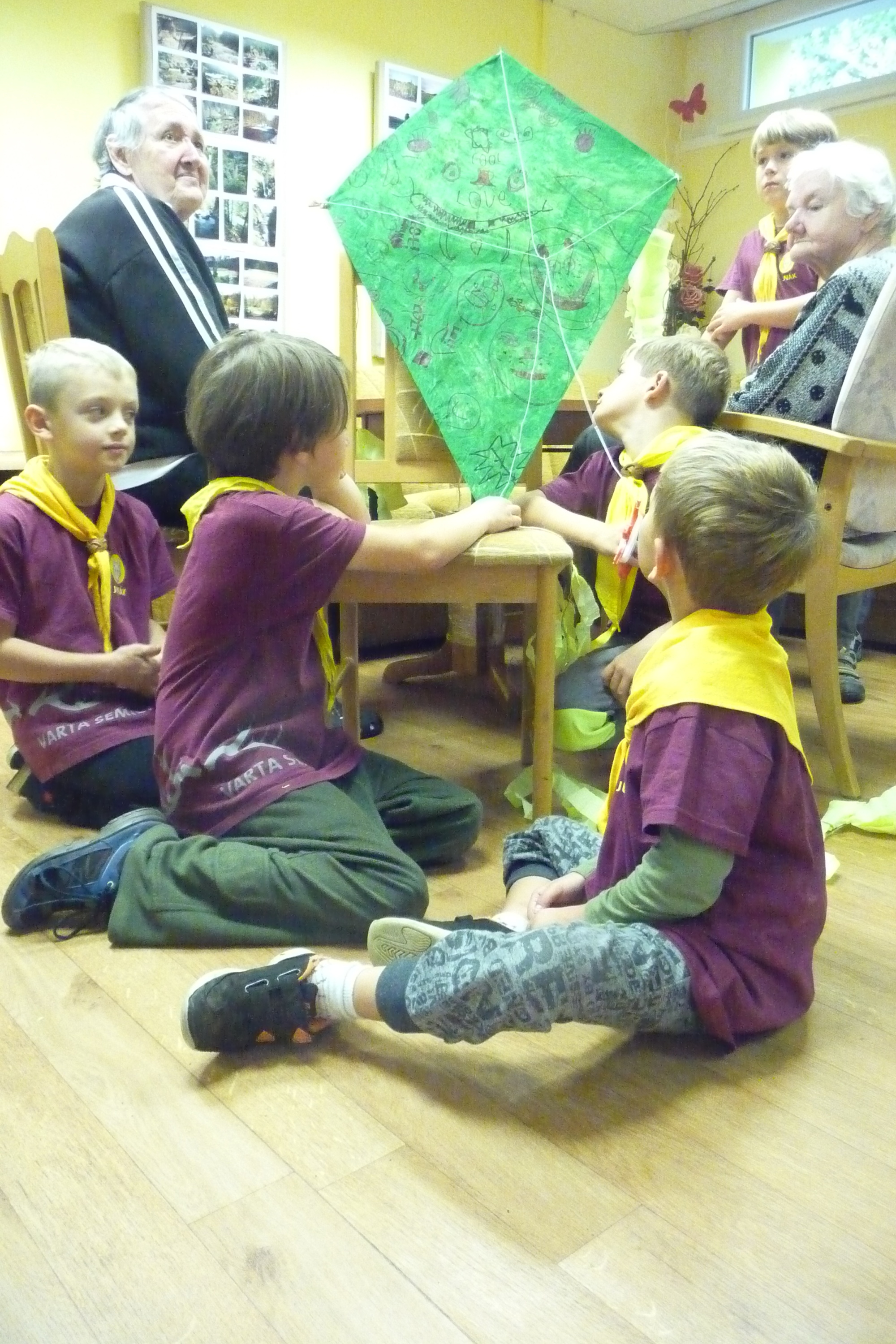 Na sobotu 28. září jsme si domluvili společnétvoření s mladými skauty - vlčaty. Děti společně s vedoucími a našimi klienty tvořili v kulturní místnosti krásné draky, ktré pak vlčata vyzkoší na blízkém kopci. Všichni se zapojili do tvůrčí činnosti a výslední draci byli opravdu krásní.